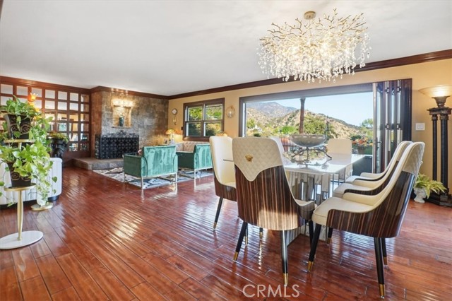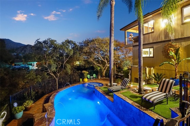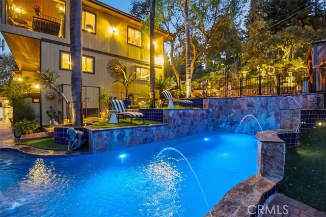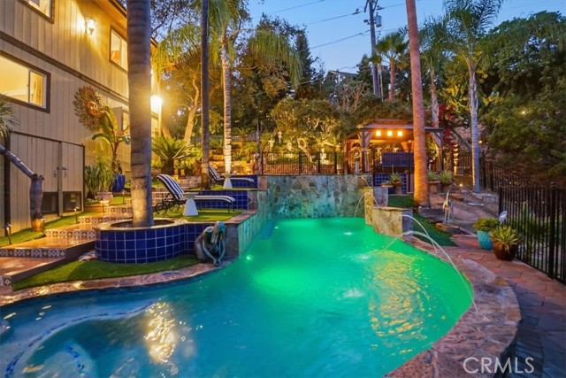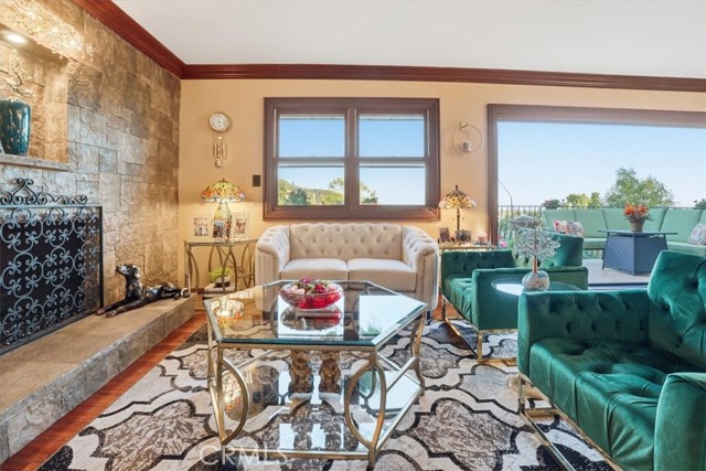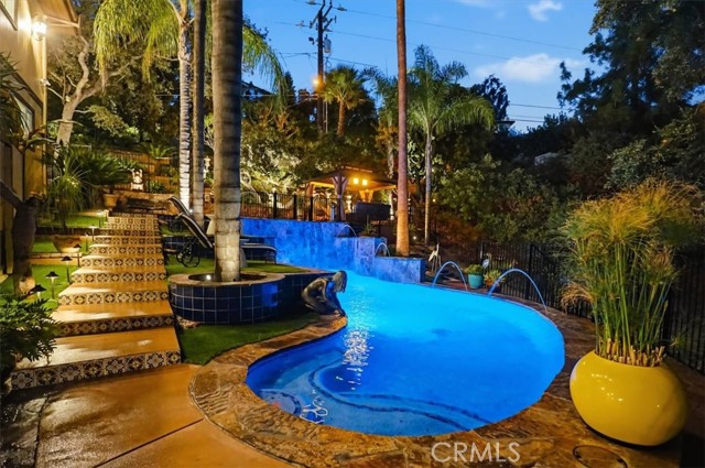Extraordinary Monrovia Hillside Retreat with Unmatched Views The views are the story at this extraordinary Monrovia hillside retreat. From nearly every room, enjoy sweeping, unobstructed vistas of city lights, rolling hills, and distant mountains—a breathtaking panorama that defines elevated Southern California living. Designed to maximize its incredible setting, the home features dramatic accordion-style doors that open the main living area to a newly built terrace that features an electric retractable awning, creating a seamless indoor-outdoor flow that blurs the line between home and horizon. Step inside to a warm and inviting living room with an elegant fireplace and rich flooring that extends into the dining area and beyond. The expansive kitchen is a chef’s dream, featuring an upgraded Wolf cooktop, custom built-in Miele refrigerator, double ovens, wine fridge, bar with TV, and sophisticated finishes that complement the home’s architectural elegance. Every detail throughout reflects modern luxury and refined design. The main level includes three generous bedrooms, each with mirrored closet doors, abundant natural light, and timeless flooring. Bathrooms feature walk-in showers, stone countertops, and high-end finishes. Upstairs, the primary suite is a true sanctuary—complete with a private balcony overlooking the city that connects to an additional retreat room for additional relaxation, a spa-inspired bathroom with dual sinks, walk-in shower, vanity area, and spacious walk-in closet. Outdoors, your private resort awaits. A newly resurfaced Pebble Tec pool, brand-new hot tub, gazebo, and new fencing create a perfect blend of relaxation and style. The pool is powered by a brand new paid-off solar system dedicated exclusively to pool heating, offering sustainable comfort all year long. Multiple seating areas provide the ideal setting for entertaining or enjoying quiet evenings beneath the stars. The lower level features a large den with a stunning stone fireplace and generous living area, perfect for a game room, media space, or guest retreat. A two-car garage with tiled flooring adds both functionality and style. Experience luxury, privacy, and panoramic beauty—this is the ultimate Southern California getaway.