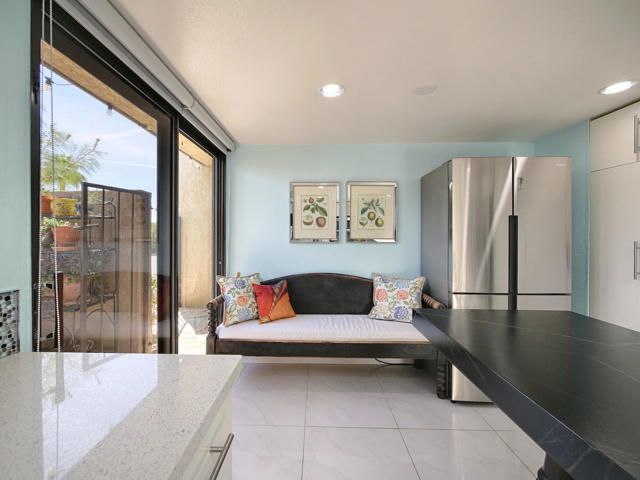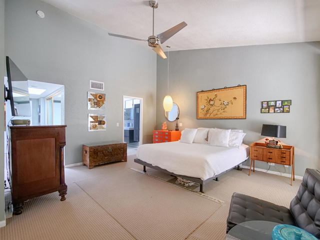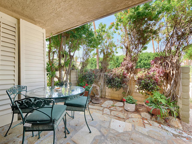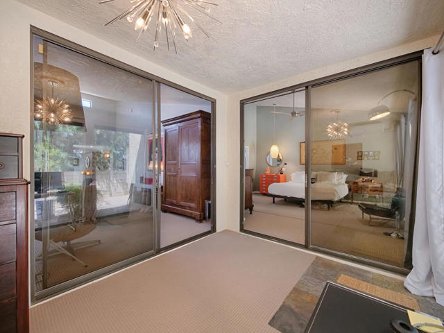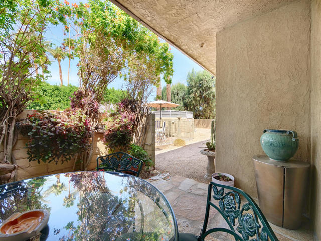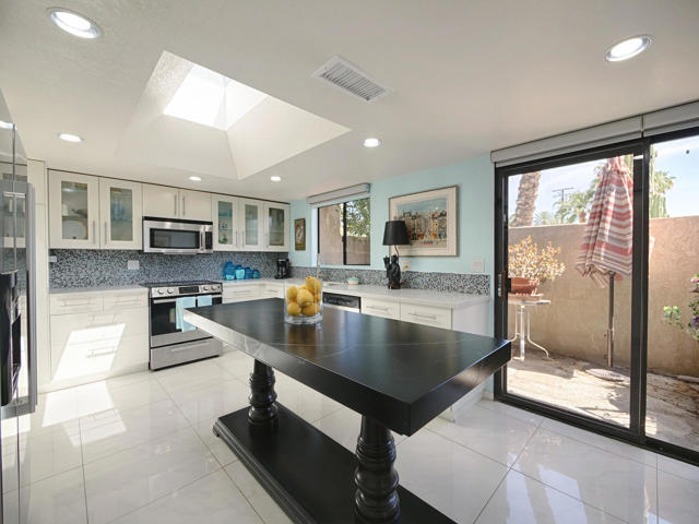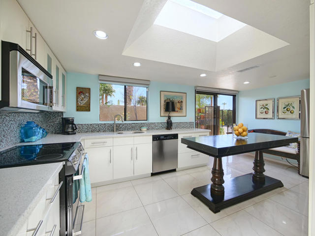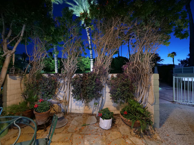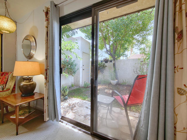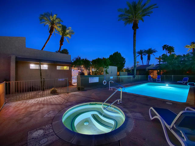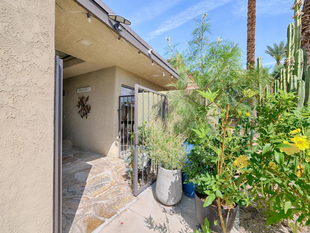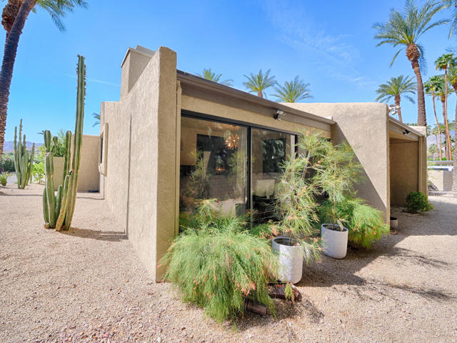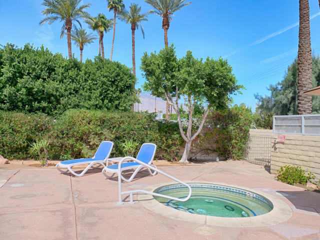 LOCATION, LOCATION, LOCATION!! Excellent South Palm Springs community tucked away in a very quiet private location...But yet close to everything. These units rarely come on the market. Welcome to this beautiful and spacious 2 bed 2 bath STAND ALONE condo that sits in a prime area of the community ..with plenty of space, it's like having your own yard, offering extra privacy! And you OWN THE LAND! This updated unit with 1832 sq ft of space delivers Beautifully and feels like a single family home The large kitchen has generous cabinets and pantry space with slide outs and soft close drawers. There is a huge skylight and a walk out patio for morning coffee and your evening grilling with family and friends. The bedrooms are spacious and nicely separated on opposite sides of the home. The huge living area (great room) has 14 ft ceilings with clearstory windows and a cozy gas Fireplace. There's also an enclosed Sunroom with Glass wall of windows with its own separate cooling system.. ideal for a work space or Den.The primary suite is very generous space (16x15)with high ceilings, oversized sliders and floor to ceiling picture windows. The primary bath has a large walk in shower, water closet and a huge walk through closet. Guests will enjoy the private bed room with bath and it's own private courtyard with access to the pool. There is also a patio off the dining room that has access to the pool. This unit has a 2 car garage with the laundry area & plenty of storage. There is an abundance of light with 3 skylights. Palm Oasis has 21 units and 3 pools. It is a fabulous location, walking distance to Trader Joes and shopping with many restaurants close by. Located minutes from the soon to be completed CV Link and across the street from the Twelfth fairway of the Tahquitz Creek Golf Course. About a 10 minute drive to the PS Airport and 15 minutes to DownTown Palm Springs. Don't miss this Gem!!! Call today for your private showing