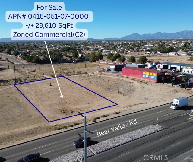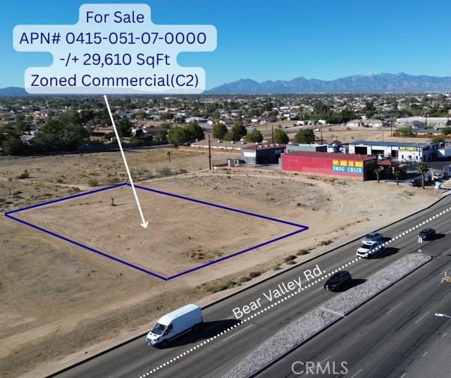 Prime Commercial Lot on Bear Valley Rd! Excellent opportunity to own a high-traffic commercial lot located across from McDonald’s and Desert Valley Hospital, and next to a car wash. This property (APN# 0415-051-07-0000) offers great visibility on one of Hesperia’s busiest and fastest-growing corridors. Surrounded by national retailers, restaurants, and new development projects, this site is ideal for retail, office, or service-related businesses. Don’t miss this chance to secure a premium location in the heart of Hesperia’s commercial growth area!