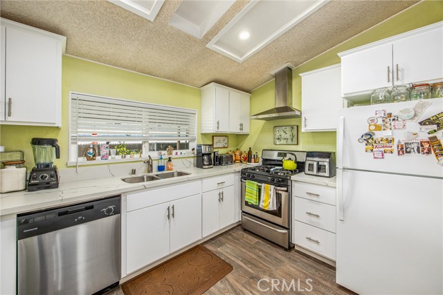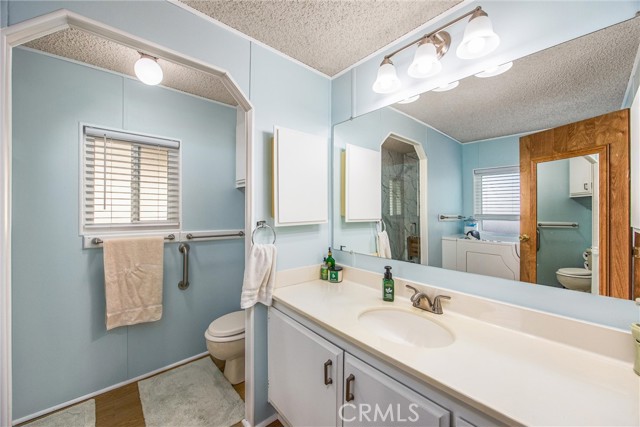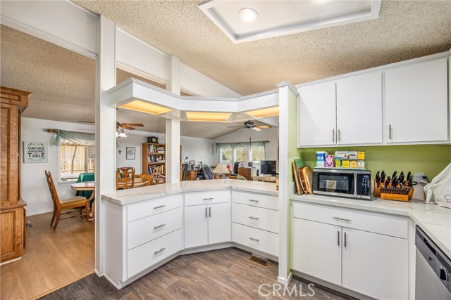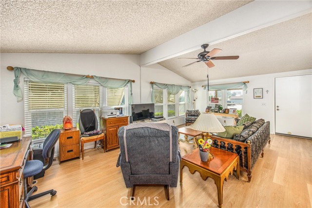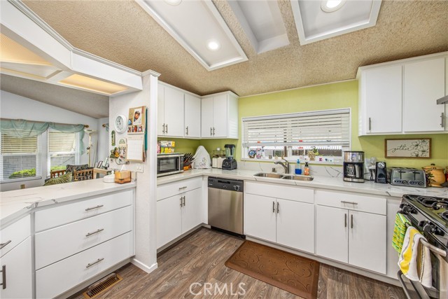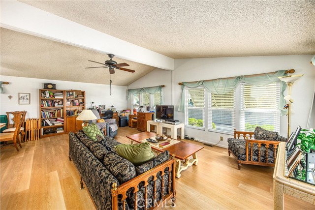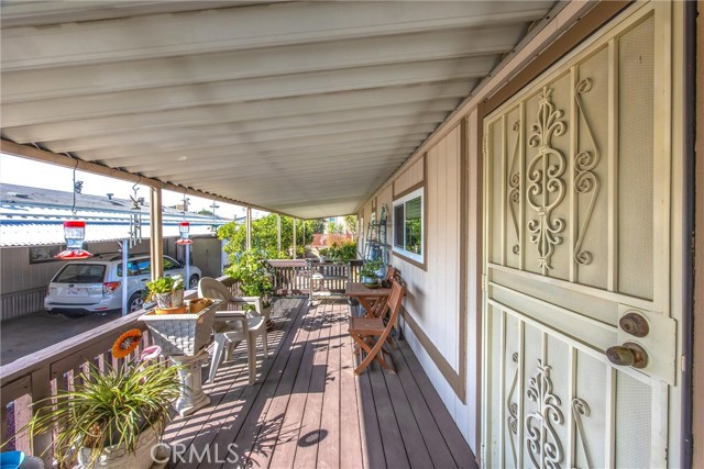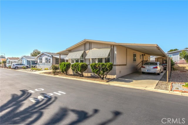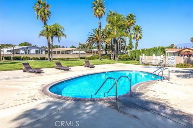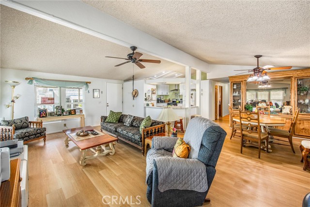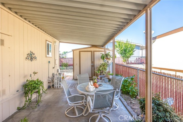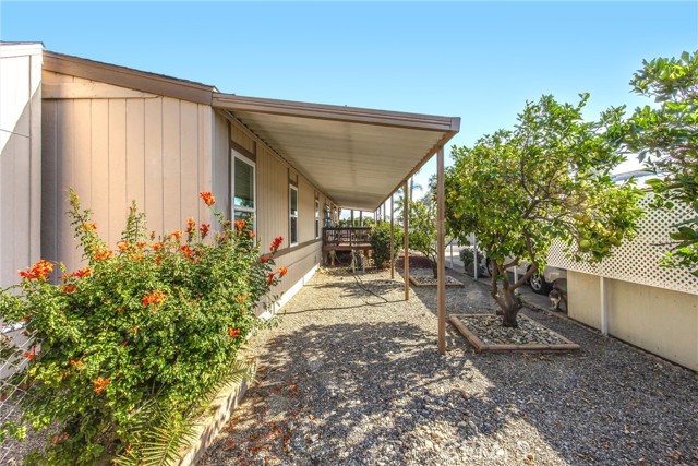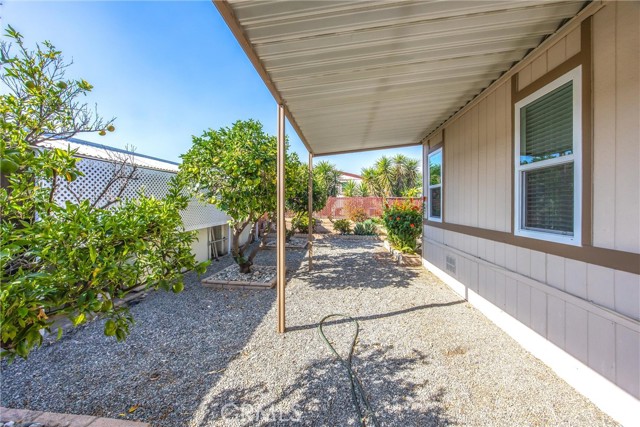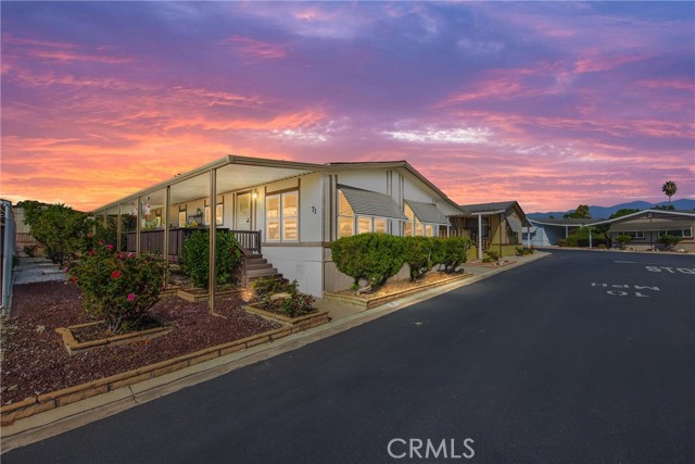 Welcome to the peaceful 55+ community of El Rancho Verde Mobile Estates! This well-maintained home offers a comfortable living space featuring an open floor plan with a spacious living area, dining room, and a beautifully renovated kitchen with plenty of cabinetry and counter space. The primary suite includes a large walk-in closet and private bath complete with a walk-in tub and walk-in shower, while the secondary bedroom and guest bath provide flexibility for guests or a home office. Enjoy a covered carport, two storage sheds, a low-maintenance yard, and two patio areas ideal for relaxing outdoors. This home and community are in the perfect location - close to shopping, dining, and freeway access. Move-in ready and full of potential — come see all this charming home has to offer!