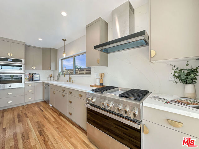 Welcome to this Sleek and Clean Mid-Century Pool home c. 1959 with undeniably timeless appeal, architecture and elegance. A recent appraisal has valued the home at $2.75 Million. Main residence features 2650 sf and 4bd 4 1/2ba. Private ADU above garage features 480 sf and 1bd1ba. This home showcases the most desired characteristics of a Mid-Century home with no expense spared. It has a clean minimalist aesthetic with gleaming original hardwood floors throughout. BELLDINNI MODERN interior and closet doors emphasize elegance and simplicity while providing superior performance, durability, and ease with MORELLI magnetic locks. A major emphasis on bringing the outdoors in and connecting to nature with large ANDERSON windows and sliding glass doors providing a scenic pool view and buckets of natural light. Open floorplan featuring two large family rooms, two fireplaces, dining area, expansive kitchen with 9ft island w/ beautiful waterfall edges, full wall backsplash, built-in bar area, and JENNAIR Appliances. All bedrooms have ensuite bathrooms for complete privacy. Luxurious primary ensuite with jetted bathtub and floor to ceiling tile. Primary bedroom features a walk-in closet and a full wall closet and all closets in the residence have custom closet organization systems. Sparkling pool, Central HVAC System, recess lighting, fresh exterior stucco, decorative lighting, private gated entry, and surveillance cameras!!! The pool has been resurfaced with updated plumbing and lights. There is a covered patio, faux grass area, and outdoor kitchen perfect for entertaining. The two- car garage has been finished with 240V outlets for electric car charging. Also save on electricity bills with environmentally friendly PAID SOLAR PANELS. There is a brand new ADU above the garage withe private entry, beautiful city views featuring 1bd1ba, full kitchen, laundry hookups, and mini split system. It's perfect for a rental, in-law suite, or private office. Come see it while it is available!