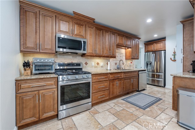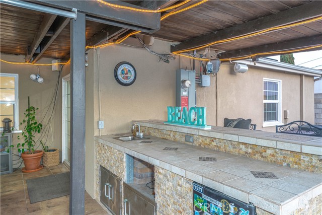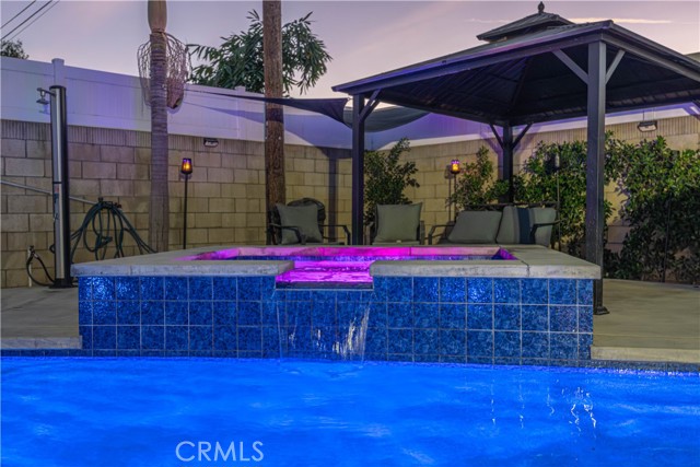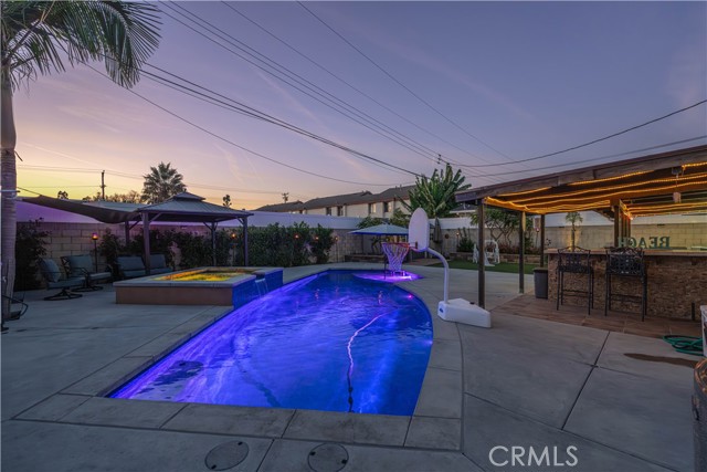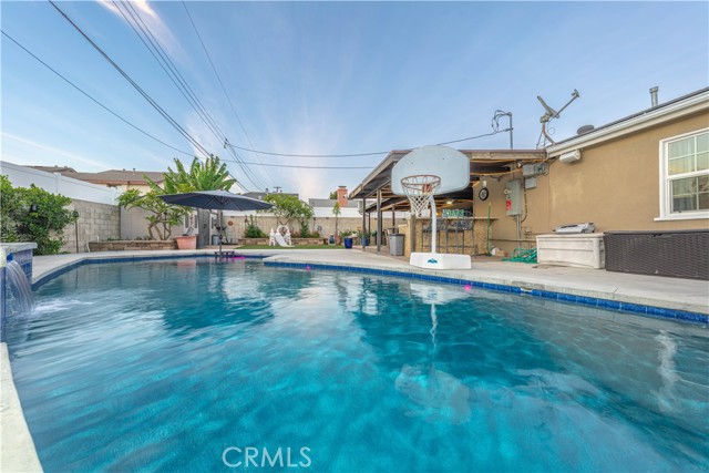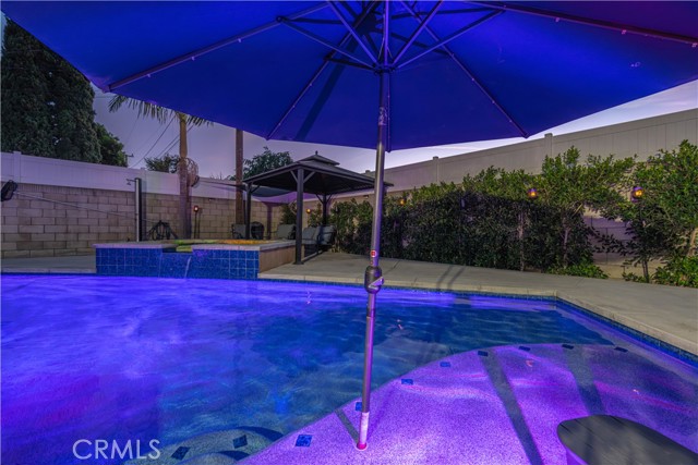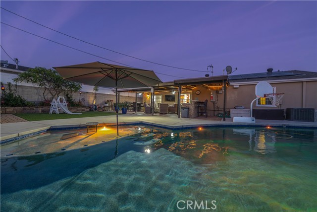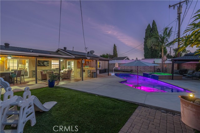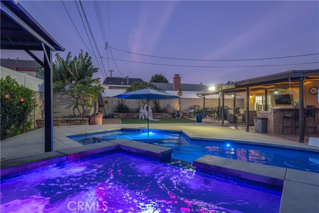 **Cul-de-Sac Location!** Welcome to this single-story home, boasting 3 well-appointed bedrooms and 3 stylish bathrooms. The heart of the home is a spacious kitchen, featuring exquisite custom accents and a convenient serve-over bar that seamlessly connects to the inviting family room, perfect for gatherings and shared moments. Retreat to the expansive primary suite that features a spa-like ensuite bathroom outfitted with custom finishes and a generous walk-in shower. Complementing this oasis is a thoughtfully designed walk-in closet, optimizing storage and space. The two additional bedrooms, paired with two well-appointed bathrooms, offer versatility for family living or guests. Step outside into your backyard paradise, highlighted by a sparkling pool, adorned with enchanting night lights, and a cascading water feature that flows from the built-in spa. The outdoor bar area is ideal for entertaining friends and family, and the spacious patio cover provides ample shade and comfort. Additional property improvements include: A complete interior repaint within the last 2 years, Paid-off solar panels, Bright shop lights installed in the garage, A 220V plug for electric vehicle charging, A widened driveway, A stylish vinyl fence topper around the exterior of the home, A new putting green in the front yard, Lush new turf along the sidewalk area, A motion sensor kitchen faucet for added efficiency, Recessed lighting throughout the house, A Nest floodlight and camera in the backyard, Motion sensor lights installed in both the front and backyard, GFCI outlets strategically added throughout the house, A tankless water heater, A complete pool renovation in 2023, A luxurious built-in jacuzzi, All pool equipment is brand new and equipped for heating, New concrete surrounding the pool area, Thoughtfully redesigned landscaping in the backyard, A backyard TV included in the sale, Kitchen and garage refrigerators included in the sale, A charming backyard gazebo, A spacious storage shed, Multiple crawl spaces throughout the house, A modern Nest keyless lock system on the front door for security and a Nest climate control for the entire house. Conveniently situated near the 405 and 22 freeways, as well as the esteemed Eastwood Elementary, this home offers easy access to amenities while allowing you to enjoy the refreshing ocean breezes in this highly sought-after area of Westminster. This residence truly embodies a perfect blend of comfort, style, and modern convenience.