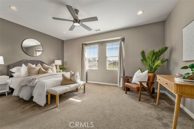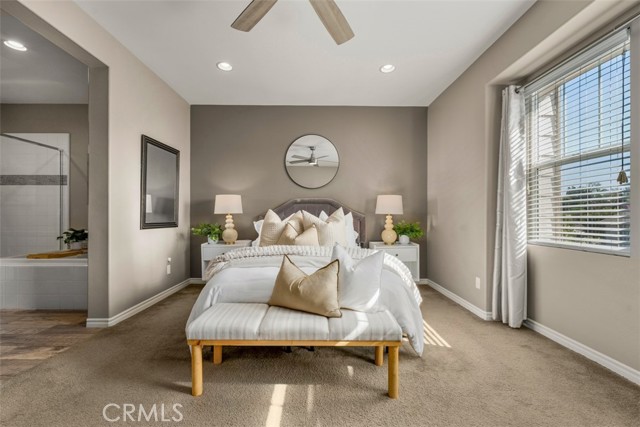 This beautifully maintained 3-bedroom, 2.5-bath condo offers 1,832 square feet of stylish and comfortable living in one of Yorba Linda’s most convenient and central communities. Step inside to discover a bright, open layout with generous living spaces designed for both everyday living and entertaining. The home showcases tile flooring and recessed lighting throughout the downstairs. The spacious upgraded kitchen with sleek quartz countertops, a large island, and abundant work space for cooking or casual dining. Outfitted with a GE stove and dishwasher, Samsung refrigerator, and a walk-in storage closet, this kitchen is perfect for the home chef. The large primary suite is a true retreat, offering a walk-in closet with custom organizers, an en-suite bath, dual vanity, separate shower, and soaking tub. Two additional bedrooms provide plenty of flexibility and share a convenient Jack and Jill bathroom. All bedrooms feature ceiling fans, custom blinds, and closet organizers for added comfort. Enjoy the ease of an upstairs laundry room with plenty of storage and counter-space. The 2 car garage has been upgraded with overhead storage racks, epoxy flooring and a retractable garage screen door. A gated private front patio overlooking the greenbelt provides the perfect spot to BBQ or unwind. Additional highlights include Nest thermostats on both levels, LifeSource water filter, and tankless water heater. Enjoy the best of community living with a resort-style HOA that includes a sparkling pool and spa, clubhouse, playground, BBQ, picnic areas, and security patrol. Perfectly situated near top-rated schools, shopping, dining, parks, and easily accessible to freeways, this home combines comfort, convenience, and the unbeatable Yorba Linda lifestyle. Don’t miss your chance to own a beautiful home in the center of everything Yorba Linda has to offer!