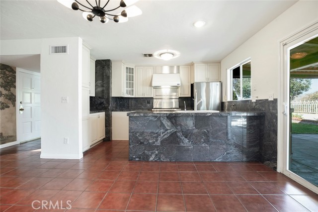 VIEW, VIEW, and more VIEW. 180 degree view of Golf Course and Mountains. So much fabulousness here aside from the captivating VIEWS. Entry/Great Room features vaulted beamed ceiling with skylights. Updated kitchen: granite countertops, custom cabinets, WOLF Range & VIKING Dishwasher. Living Room with built-in wall unit and Fireplace. All 3 good sized bedrooms are off the main hall. Primary on the view-side is en-suite with .75 bath. Two bedrooms share a renovated full bath. LARGE expansive Patio, Storage Galore both inside & outside + a finished Bonus Room with wall A/c. Additional features include a secure custom built pet enclosure, two-car Garage, and immense privacy. You DO NOT want to miss seeing this one!!!