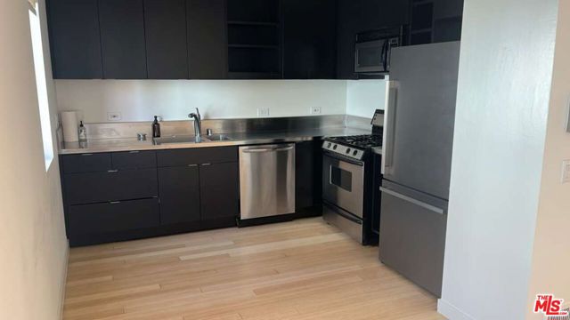 This 15-unit complex is in northern Venice. Two blocks south of Gold's Gym and three blocks from the beach. This 1,554 sqft unit is wired for media and Internet access and has been designed to provide a flexible living arrangement. The compound entry is through a gate. The lot contains visitor parking. The ground floor is accessed directly from the garage or front door ceilings over 14 feet high. The kitchen and dining area are on the second floor and overlook the double-high main space. The second-floor top has been split to create two distinct rooms of varying heights. The bedroom is on the upper floor and has an outdoor balcony. Interior finishes and appliances include concrete floors on the ground level, natural bamboo flooring upstairs, fully tiled bathroom kitchen with stainless steel countertop. The appliances include a stove and refrigerator. This is a general description of the complex. Variations exist among the units.