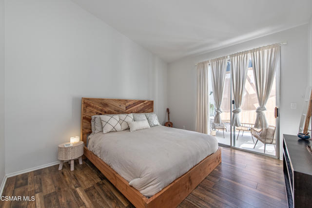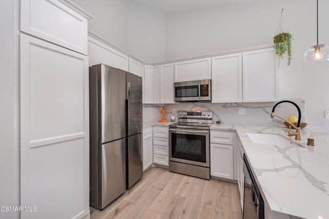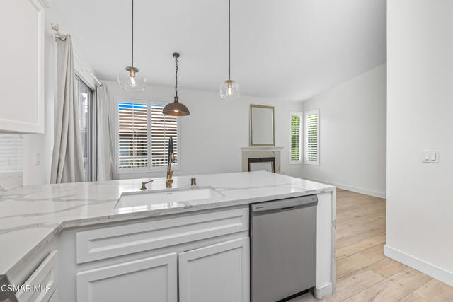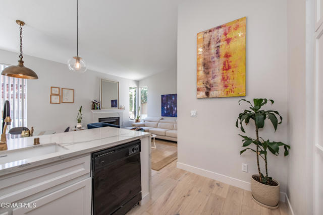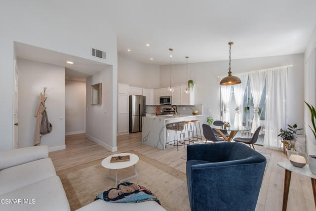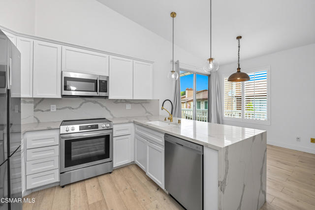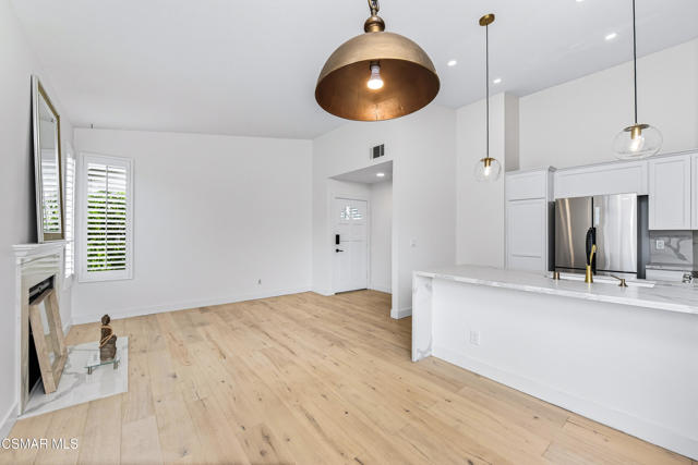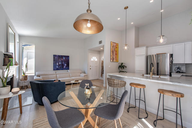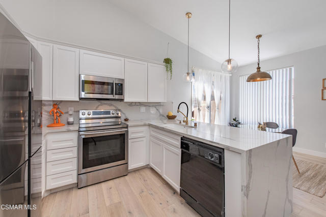 Welcome to this stylishly updated 2-bedroom, 1-bath condo in the heart of Thousand Oaks! Just minutes from top restaurants, shops, parks, award-winning schools, and the Civic Arts Plaza, this home offers unbeatable convenience. Inside, you'll find vaulted ceilings, abundant natural light, and a spacious open floor plan. Recent upgrades include hardwood flooring in the main living area, fresh paint, hardwood shutters, and newer stainless steel appliances. Wood fireplace and two sliding doors to access a private balcony. Both bedrooms are generously sized, with mirrored closet doors and plenty of storage. Additional highlights include an updated bathroom, in-unit washer and dryer, and a newer HVAC system. Enjoy comfort, style, and convenience all in one--discover the charm of living on Pleasant Way!