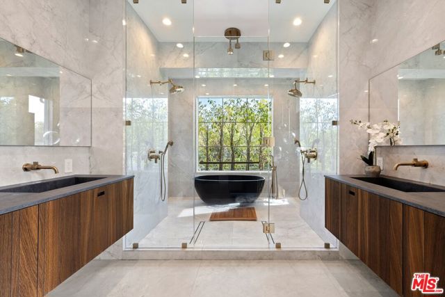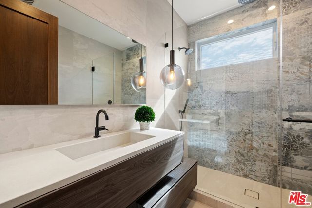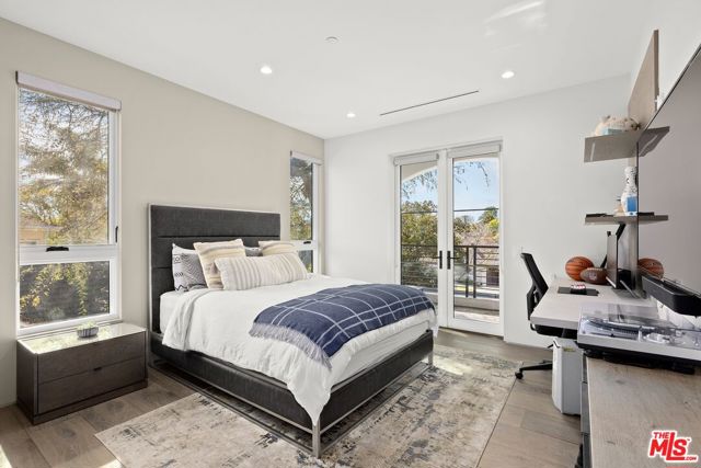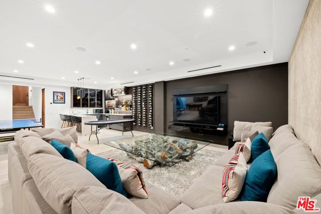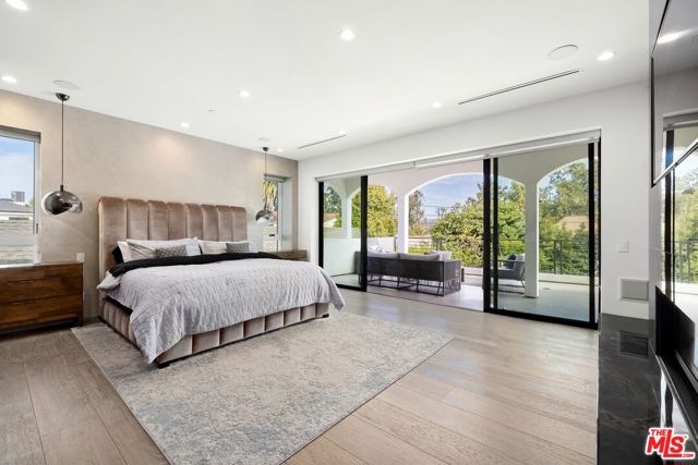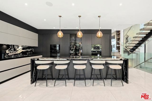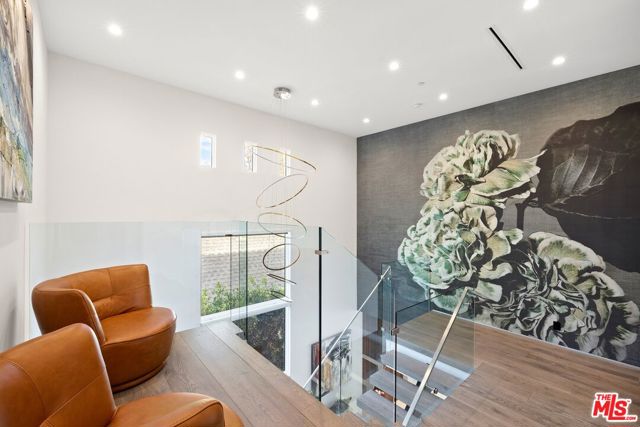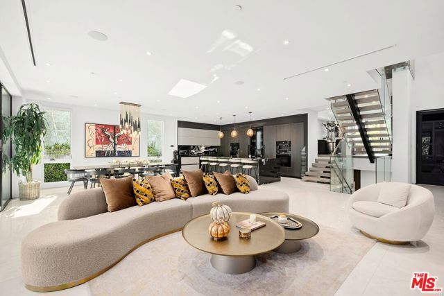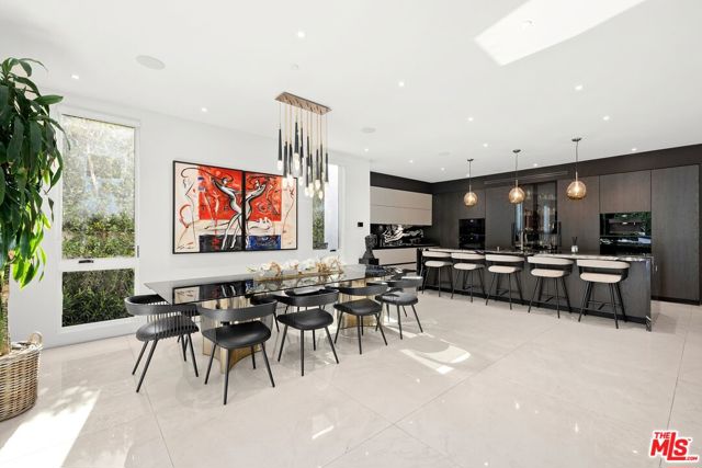 Wonderfully situated in West Los Angeles, this newly constructed contemporary home is perfectly positioned between Century City and Westwood. A sizable 6,800 sqft is laid out over three stories and includes five bedrooms and five full bathrooms, with tasteful details throughout. Vast entertainment spaces include highly polished floors, open room concepts, and sliding floor-to-ceiling windows that open to a loggia-style deck, which frames the pool, fountain, and spa, all within a private hedged back garden. The kitchen boasts dark cabinetry and a pull-up waterfall black marble island with Miele chef-grade appliances. Rounding out the main living space is a dining area with room to host 10 or more guests. Each floor is accessed via a floating concrete and polished steel stairwell, a secondary front-facing den with fireplace, and balcony creates a more intimate space before leading to the bedrooms. The primary suite boasts a black marble fireplace, oversized patio doors, and an archway-covered balcony that overlooks the pool. The ensuite has a stunning dual shower walkthrough-to-standalone tub, stone-topped vanities, and brass fixtures. Other bedrooms feature matching bathrooms and balconies. Unified features throughout include porcelain wide-planked white-washed flooring, recessed lighting, bespoke cabinet work, and unique wallpapers. Further amenities include a partially subterranean games room with a wine wall, wet bar, table tennis, pool table, and a large TV, a resolute space for sports gatherings. Nearby schools include Westwood Charter Elementary, Le Lycee Francais, Wildwood, and UCLA. 1940 Kelton is located close to Westwood Village, Westfield, and the famed Sawtelle Japanese district. Property can be leased furnished or unfurnished.