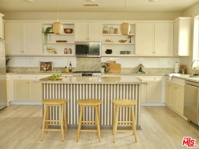 Welcome to Resort Living at the Harvest Community with 225 acres of open space, parks, bike paths and hiking trails. Nestled within this enclave, this home is a very impressive turnkey, with nearly 2000sf of comfortable and stylish living space, with 3 bedrooms (plus a loft) and 3 baths. It's a beautiful wagon-wheel chandelier that levitates over the main seating area from its 20-foot ceilings. And it's 8ft, "old-growth wood" encased panoramic patio doors open to the bamboo walled, gravel filled outdoor area with suspension bridge-inspired, natural-jute/manila rope patio covering, built-in seating, and raised "whiskey-barrel" fire pit, and a cute water feature that reflects the natural history of the Santa Paula area. The open layout seamlessly connects the Kitchen to the "Great Room" to the boho indoor/outdoor area. The chef-inspired kitchen is the heart of this home, featuring a large center island, granite counters, custom bamboo pendants, top-of-the-line stainless steel appliances, a walk-in pantry, and plenty of storage. Bringing groceries into the kitchen from the attached, built-in garage is a breeze, and having 2nd primary bedroom downstairs is a valuable asset. Throughout, there is new flooring with colors that bring a feeling of warmth to this special home. The upstairs has a custom rail with geometric iron work and more repurposed "old-growth wood" as a railing cap. The generous upstairs primary has a large walk-in closet (with automatic lights), an ensuite bathroom with a dual-sink counter, and separate shower and tub areas. The toilet area is also separated from the main bath. The versatile loft can be used as an office, theater, or even as another bedroom. The RING camera doorbell lets you see who's at the door, and the smart lock allows you to open the door remotely for guests. Telling "Alexa" to turn up the thermostat or dim the lights or instructing your Wi-Fi-connected LG dishwasher to run during the day when the solar panels are producing. makes it even more fun. The Waterdrop filter system not only gives you the cleanest water, it tells you how clean: with TDS parts per million on its display. The pictures will tell you this is more than just a home, it's a rare chance to buy your own private, customized retreat in one of Ventura County's most up-and-coming resort neighborhoods. Don't miss out on the opportunity.