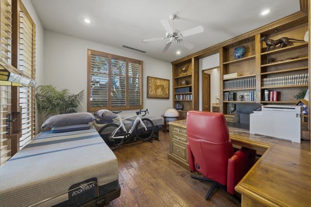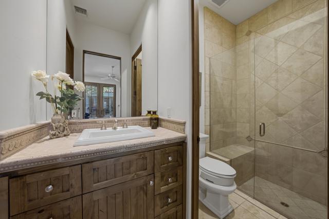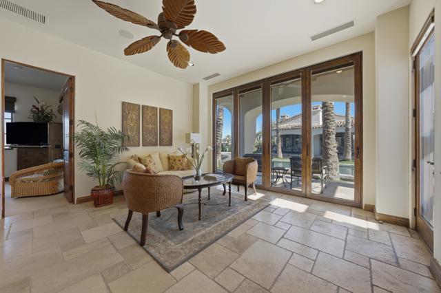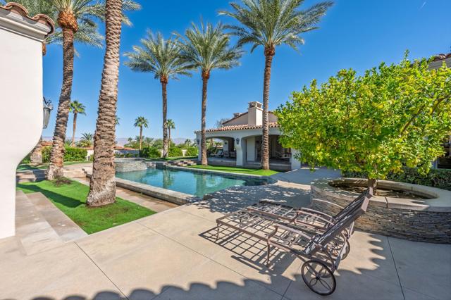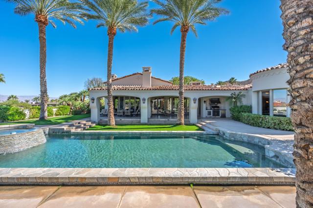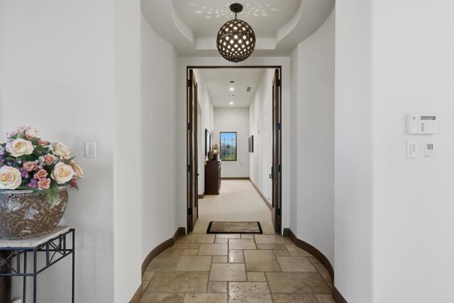 This quality built, old world designed masterpiece is one of the most substantial homes at Mirada! Set on .80-acre lot with commanding down valley, night-light and mountain views, with a luxury resort atmosphere. This 6,800 square foot residence consists of 5 bedrooms, a dual built-in office, a theater & an exercise room. The entry Courtyard features a fountain & a fireplace seating area. The massive iron entry door leads to an impressive foyer and on to a Grand Living Room with high open beam ceilings & massive fireplace. An incredible gourmet cook's kitchen with the best of all appliances, granite countertops & custom cabinets adjoins a spacious family room and breakfast nook. The formal dining room includes a wine room and views out to the courtyard. The Primary Bedroom Suite enjoys mountain views, fireplace and two bathrooms. There's a 2 Bedroom Casita with Sitting Room that opens to the pool area. Incredible outdoor living area and dining area that share a fireplace and overlook the resort style pool & spa. Residents of Mirada Estates enjoy exclusive privileges at the adjacent Ritz-Carlton Rancho Mirage, including dining, world-class spa, fitness facilities and special rates for guests.