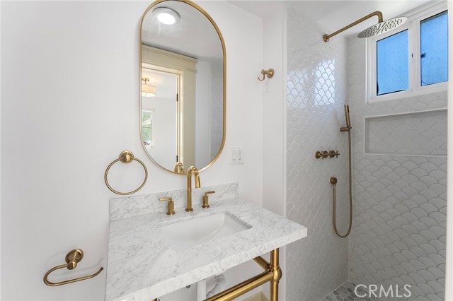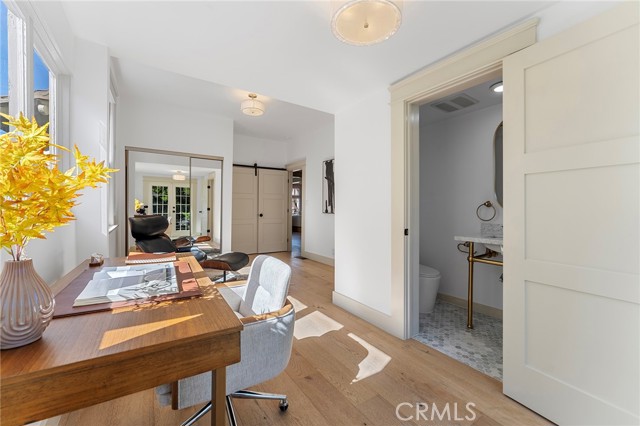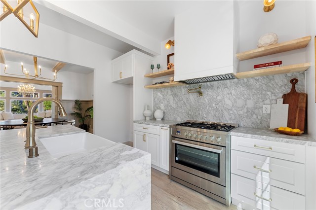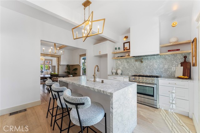From the moment you arrive, the home’s striking Craftsman exterior—finished in a sophisticated taupe with warm brown undertones—sets the tone for the elegance that awaits inside. Step inside to discover a sunlit living room that radiates warmth and comfort, thanks to large, picture windows that pour in natural light and create an airy, open atmosphere. Ideal for both everyday living and stylish entertaining, the well-planned layout features four generously sized bedrooms and three spa-inspired bathrooms, offering ample space for family, guests, and work-from-home flexibility. The formal dining room is perfect for hosting unforgettable dinner parties or intimate gatherings, while the show-stopping kitchen is designed to inspire culinary creativity. A perfect blend of beauty and functionality, the kitchen boasts custom white shaker cabinetry, luxurious marble countertops and matching backsplash, a farmhouse sink with a sleek faucet, convenient pot fillers, and high-end built-in appliances, including a designer stove and dishwasher. Every detail has been meticulously curated to provide both elegance and ease. Retreat to the primary suite, a true sanctuary featuring a spacious walk-in closet, a serene alcove soaking tub, and a private bonus area ideal for a home office, nursery, or cozy reading nook—tailored to meet your evolving lifestyle needs. Each bathroom is a work of art, adorned with Carrara marble vanities and Carrara hexagon tile flooring, creating a spa-like ambiance that elevates your daily routine. With its seamless blend of classic finishes and modern upgrades, this home offers not just a place to live, but a refined lifestyle. Whether you’re enjoying an evening in or entertaining guests, every corner of this residence exudes style, comfort, and thoughtful design. Don’t miss your opportunity to own this one-of-a-kind home in Los Angeles—where luxury, location, and livability come together effortlessly.