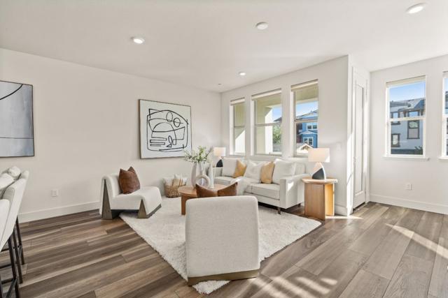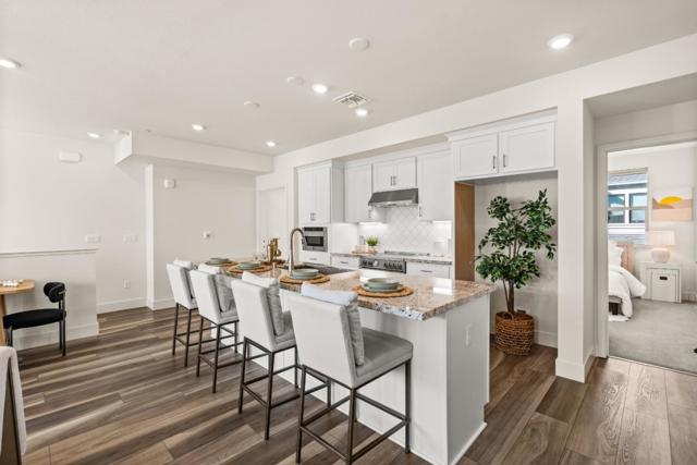 Welcome to this modern 2-bedroom, 2.5-bath townhome that blends style, comfort, and convenience. The open concept main level showcases a gourmet kitchen with granite countertops, stainless steel appliances, and a large eat-in island that flows seamlessly into the spacious living and dining areas, perfect for entertaining or everyday living. Upstairs, the primary suite features a spa-inspired bathroom with dual sinks and a walk-in shower, while the additional bedroom provides flexibility for family, guests, or a home office. The tandem 2-car garage offers secure parking along with extra storage. Resort-style amenities include beautifully landscaped courtyards, outdoor dining patios, built-in BBQ stations, a cozy fireplace lounge, and multiple seating areas surrounded by greenery. Whether hosting friends, relaxing by the fire, or dining al fresco under the pergola, the shared spaces create a true sense of community. Conveniently located near parks, supermarkets, restaurants, schools, and shopping, and just minutes from Apple Park and freeway access, this townhome offers the perfect balance of private living and vibrant community lifestyle.