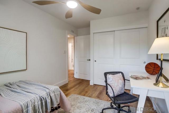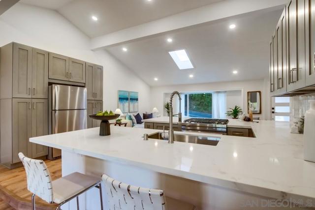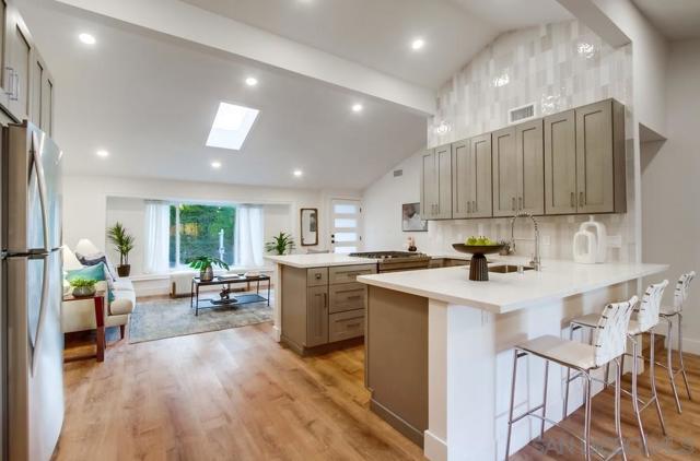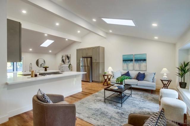 Charming El Cerrito Single-Level with Modern Upgrades & Canyon Views. Nestled on a QUIET, LESS-TRAVELED stretch of 54th Street in the highly desirable El Cerrito neighborhood, this beautifully upgraded single-level ranch-style home blends comfort, style, and scenic surroundings. Featuring 3 bedrooms and 2 full bathrooms, the open-concept layout was thoughtfully reimagined by removing walls to seamlessly connect the kitchen, family room, and living room—perfect for today’s lifestyle. The floors in the entry and living room have been leveled! Recent upgrades include luxury vinyl plank flooring throughout, high-end self-closing cabinetry, quartz countertops, recessed lighting, solar tubes, and tastefully renovated bathrooms. Natural light fills the home, enhanced by skylights, plantation shutters, and crown molding. An expansive climate-controlled enclosed patio—adding approximately 340 sq. ft. of versatile living space—offers endless possibilities for recreation, an office, or additional entertaining. Step outside to a fully fenced backyard with artificial turf and peaceful canyon views, ideal for relaxing or hosting gatherings. Additional highlights include the roof was recently serviced and painted, newer HVAC system, attached 2-car garage with laundry hookups, and the convenience of nearby shopping, dining, and easy access to all that San Diego has to offer. It’s more than a home—it’s a lifestyle!