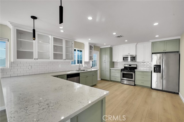 Welcome home to a beautifully remodeled, move-in-ready home located in one of Tujunga’s most desirable residential neighborhoods. Step inside to discover an inviting open floor plan featuring a spacious living area with a charming fireplace that flows seamlessly into the dining area and modern, updated kitchen. The kitchen showcases elegant white granite countertops, subway tile backsplash, and stainless steel appliances, perfect for both everyday living and entertaining. Throughout the home, stylish laminate flooring enhances the bright and cohesive layout. Off the main hallway are two well-sized bedrooms and a primary suite complete with a tastefully remodeled ensuite bathroom. A second, fully renovated bathroom adds both comfort and functionality. The generous and private backyard is ideal for entertaining, featuring a sparkling pool and a thoughtfully designed outdoor kitchen island, perfect for gatherings and warm summer days. Additional features include a camera security system, in-ceiling speakers in the living room, a charging station for electric vehicles, new electrical wiring throughout the house, new 200 amp electrical panel, and solar panels for energy efficiency. This exceptional property blends modern updates, functionality, and comfort, offering an outstanding opportunity to own a turnkey home in a great Tujunga location.