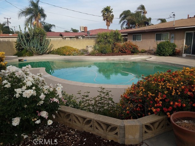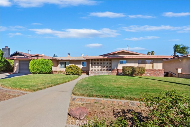 Premium location North of 210 Freeway in well established neighborhood. Desirable single story ranch style home on an oversized 9600 sq ft lot. Offering an updated kitchen with lots of cabinet and counter space, breakfast bar, dining area, spacious living room with cozy fireplace surrounded by rock hearth and facade, dual paned slider opening to back yard, wood laminate flooring in most rooms, large master bedroom with adjoining full bath, dual paned windows, mirrored storage closet in hallway as well as mirrored wardrobes in all bedrooms, and much more. Spacious back yard with HUGE pool and spa. Property has been a work in process that still needs some substantial work, but has tremendous potential and offers the right buyer an amazing opportunity to make it their own!