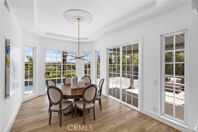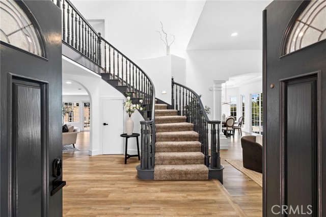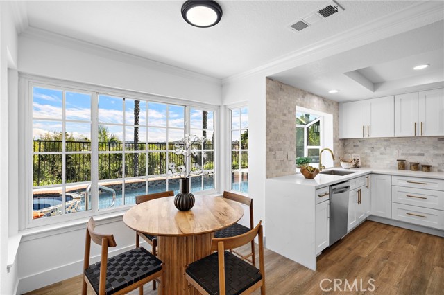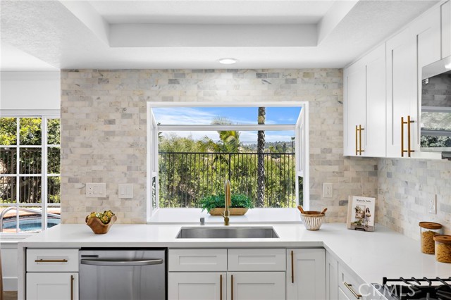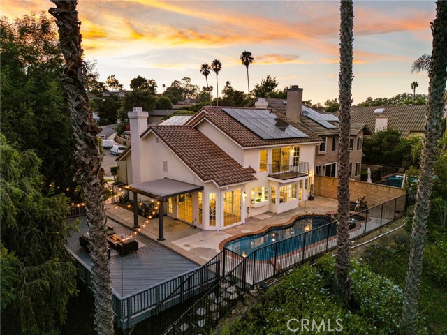 Perched above the canyons of Laguna Niguel with sweeping mountain & sunset views, 29312 Kensington Drive is a contemporary pool home that marries modern design with the best of California living. Set on one of the largest lots in the neighborhood, a unique pathway leads to a lower retreat shaded by mature trees, offering exceptional privacy seldom found in this community. This smart home allows nearly every function to be managed from your cellphone, granting unmatched convenience. Recently updated with stylish finishes & thoughtful upgrades, this turnkey 4-bed, 3-bath residence is move-in ready. A double-door entry & soaring ceilings welcome you into spacious, open living & dining rooms where natural light abounds & a sleek fireplace creates an inviting focal point. The kitchen is a showpiece with a large quartz waterfall island, custom cabinetry, designer tile, high-end stainless steel appliances & a charming atrium window. The adjacent family room offers a 2nd fireplace, wet bar, & sliding glass doors that seamlessly connect to the backyard patio, blending indoor comfort with outdoor living. A main floor bedroom & full bath provides ideal accommodations for guests or multigenerational living. Upstairs, the primary suite is a private sanctuary with vaulted ceilings, dual walk-in closets, romantic private balcony & spa-quality bath featuring a soaking tub, custom-tiled shower, & double vanities. Two additional bedrooms & an updated full bath complete the upper level. The three-car garage provides ample room for vehicles and storage. Highlights include wide baseboards, designer paint, recessed lighting, newer laminate flooring, plush carpet & an upgraded main electrical panel (accommodating all appliances—including simultaneous charging for two EVs—plus all household electricity needs at a monthly discounted rate). Latest Tesla batteries & solar ensure efficient energy use. The property is surrounded by varied, mature trees, enhancing both natural beauty & privacy. The outdoor spaces are perfect for relaxation & entertaining, with a spacious deck, multiple seating areas & a sparkling pool & spa, all enjoying uninterrupted mountain & canyon vistas. Ideally located near Ridge View and Clipper Cove Parks, Aliso & Wood Canyons Wilderness Park, shopping, dining, top schools, & SoCal’s iconic beaches, this home blends expansive outdoor living, modern design, & natural beauty for an exceptional lifestyle.