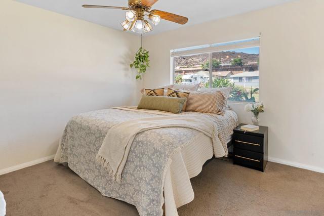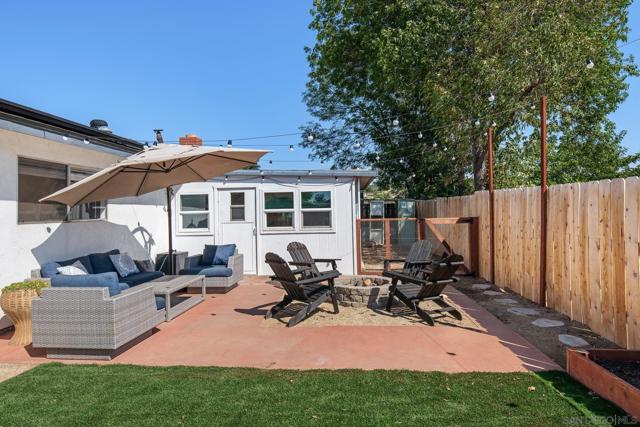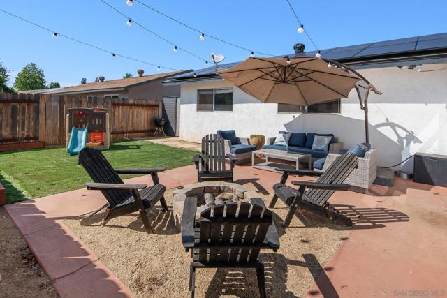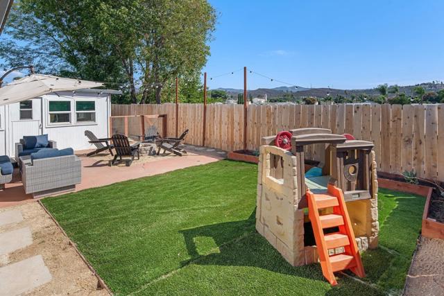 Charming Lakeside Homestead with Owned Solar & Mountain Views! Welcome to a place where small-town charm meets easy suburban living. This 3-bedroom, 2-bath home combines vintage character with smart updates, including a newer HVAC, an approximately 5-year-old roof, and owned solar (30 panels) with a garage subpanel—perfect for a future ADU. Inside, a cozy rock wood-burning fireplace, wood panel accents, and updated farmhouse lighting create a warm, inviting feel. The spacious sunroom adds flexibility as a playroom, art studio, or game room. Step outside to relax by the firepit, take in the mountain and sunset views, or enjoy low-maintenance turf and a chicken coop for your backyard homestead dreams. Nestled on a quiet cul-de-sac surrounded by friendly neighbors, this home captures the spirit of Lakeside—where community comes first. Just a short bike ride away, Lindo Lake offers walking paths, a skatepark, pickleball courts, and a bustling community center. With solid bones, plenty of character, and a welcoming neighborhood feel, this home is ready for you to make it your own—all just 30 minutes from the coast.