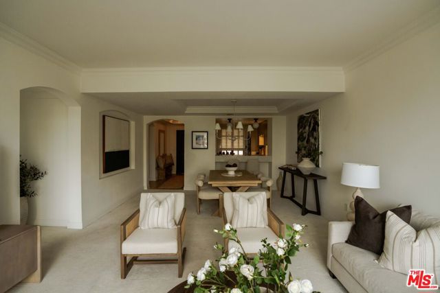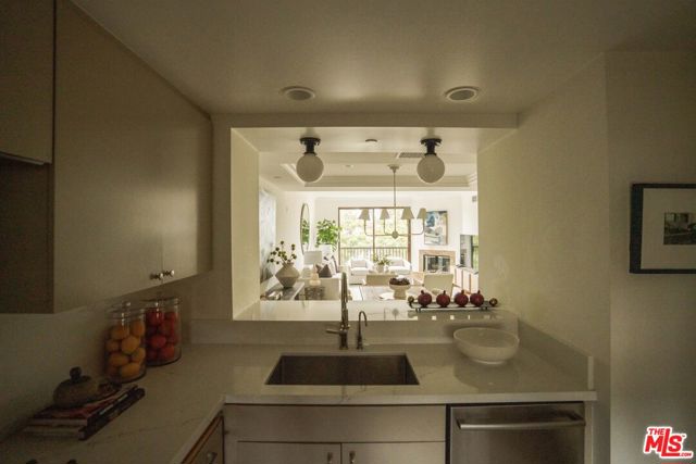 Experience refined Brentwood living in this light-filled, single-level unit at The Westgate, one of the area's most desirable full-service buildings. Positioned perfectly with a south-facing exposure overlooking Gorham, Residence 302 captures beautiful natural light throughout the day and a serene, tree-lined outlook. An open and airy floor plan connects the spacious living room, dining area, and kitchen, creating a seamless flow for everyday living and entertaining. The living room features high ceilings, a gas fireplace, and direct access to a small private balcony ideal for letting in that ocean breeze with your morning coffee or evening relaxation. The thoughtfully updated kitchen offers sleek stone countertops, GE Monogram stainless appliances, maple cabinetry, and a breakfast bar with seating.The generous primary suite includes a large walk-in closet and a marble-appointed bathroom with dual sinks, a soaking tub, and a separate glass-enclosed shower. A comfortable second bedroom is perfect for guests or a home office. Additional highlights include in-unit laundry, central HVAC, and ample storage.The Westgate offers a 24-hour concierge, conference room, fitness center, indoor spa, EQ insurance, assigned storage, and ample guest parking. Just moments from Brentwood's best restaurants, shops, and the Sunday Farmers Market, this home combines privacy, style, and convenience in one of Los Angeles' most walkable and coveted neighborhoods.