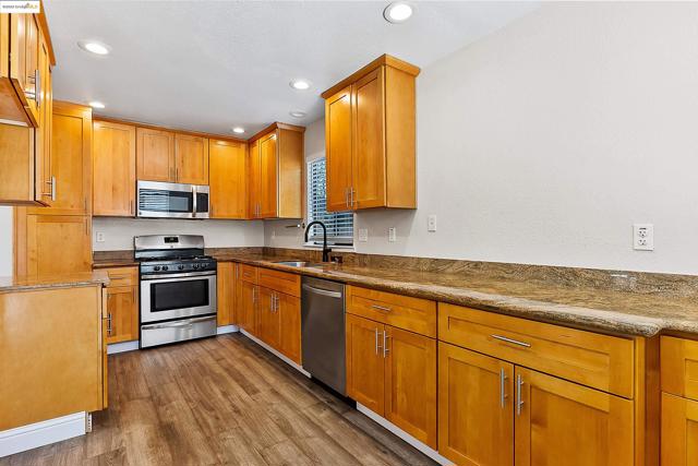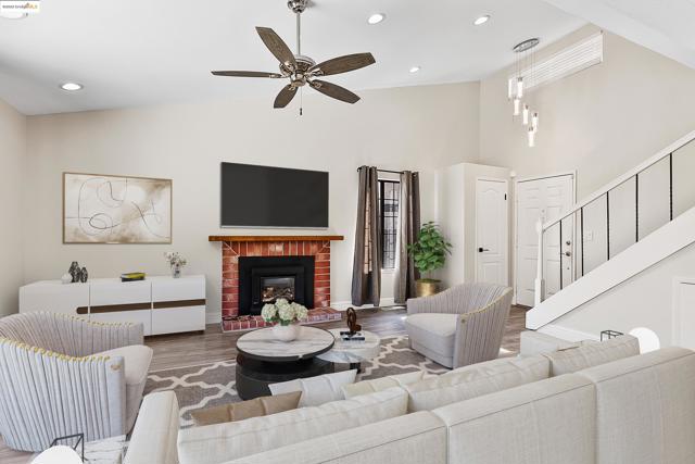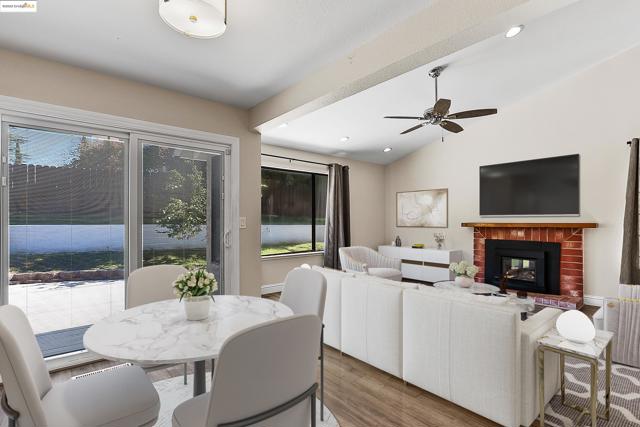 Welcome to this charming 3-bedroom, 2.5-bathroom home offering 1,422 sq. ft. of comfortable living space. Tucked away in a court location, this property features side yard access and a spacious backyard with an expansive patio—perfect for entertaining or relaxing outdoors. Inside, enjoy fresh interior paint, rich wood cabinetry, granite slab countertops, updated vinyl flooring, and carpet. The inviting family room features a cozy fireplace, ceiling fans, and recessed lighting. The home also includes an inside laundry room and an attached two-car garage. Energy-efficient living is yours with the owned solar system, helping reduce utility costs. Conveniently located close to major commute routes, shopping, and schools—this home offers both comfort and convenience.