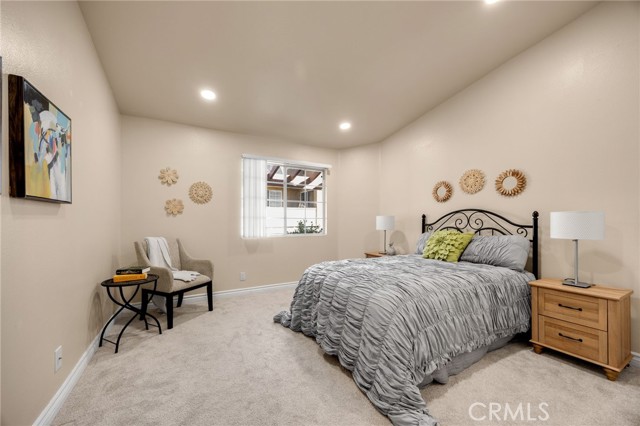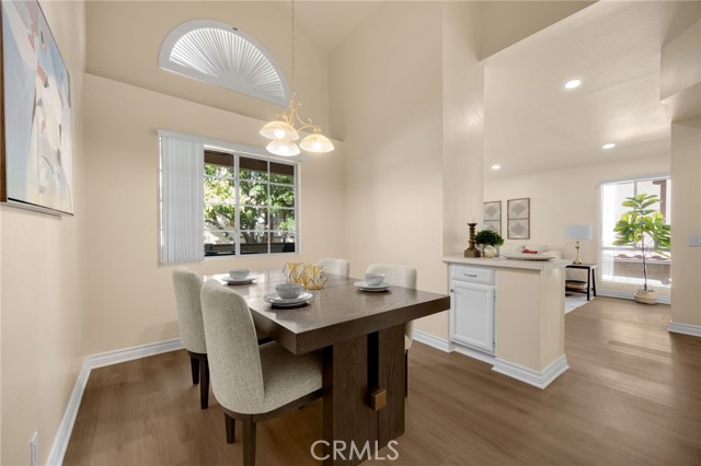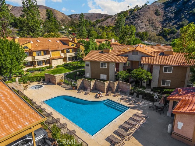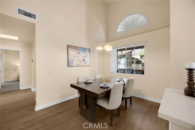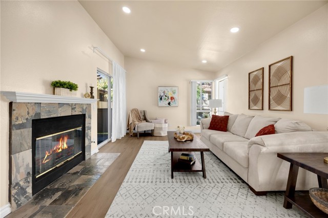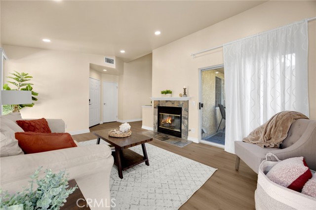 This beautifully updated upper-level 2 bedroom, 2 bathroom condo offers spacious living enhanced by soaring vaulted ceilings and a thoughtfully designed floor plan. The primary suite features an en-suite bathroom and a private sliding glass door that opens directly to the balcony, where a dedicated laundry and storage room provides added convenience—eliminating the need for off-site laundry. The second bedroom is generously sized and includes a walk-in closet. In February 2025, luxury vinyl plank flooring was installed throughout the main living areas, adding a modern and cohesive aesthetic. The kitchen is equipped with sleek stainless steel appliances, and the refrigerator is included with the home. It also opens to the balcony through sliding glass doors, ideal for outdoor dining, and is situated next to the formal dining room, which flows seamlessly into the living room complete with a cozy fireplace and additional patio access. A new HVAC system was installed in late 2023, ensuring year-round comfort. Community amenities include two pools, four spas, tennis courts, multiple playgrounds, and a clubhouse with a fitness center. The HOA covers roof maintenance, exterior termite control, water, and trash. Located within the highly acclaimed Placentia Linda Unified School District, this home is zoned for Bryant Ranch Elementary, Travis Ranch Middle School, and Yorba Linda High School. A rare opportunity to own in Yorba Linda for under $600,000—this property is not expected to last!