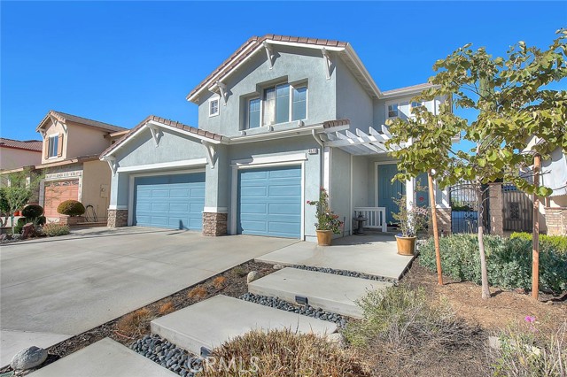 Nestled near the scenic Los Serranos Country Club, this move-in ready residence offers comfort, space, and functionality. Step into a generous formal living and dining area—ideal for hosting family and friends. The open-concept kitchen features ample cabinetry, expansive counter space, and a built-in office nook, flowing seamlessly into the inviting family room with a cozy fireplace and entertainment niche. The first floor also includes a full bathroom and a convenient laundry room. Upstairs, the spacious primary suite with mountain views boasts dual vanities, a soaking tub, separate walk-in shower, and a large walk-in closet. Three additional bedrooms, one with an ensuite full bathroom and another separate full bathroom complete the second level. Enjoy outdoor living in the private backyard with a large covered patio, built-in BBQ, and plenty of room to entertain. Best of all—no HOA fees! Don’t miss your chance to make this exceptional property your dream home.