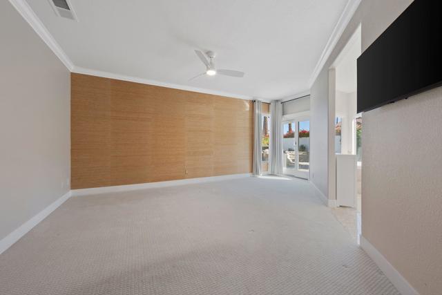 Modern Desert Oasis | 3 Bed | 4 Bath | PRIME CORNER LOT | PAID/OWNED SOLAR | NEW HVAC | GARAGE MINI A/C SPLIT | NO HOA's | REMODELED- Minutes from El PaseoStep into refined Palm Desert living with this immaculately upgraded 3-bedroom, 4-bathroom home, nestled on a desirable corner lot in the heart of the city ''just minutes from the shops and restaurants of El Paseo.' With elegant designer touches throughout, this home is the perfect blend of luxury, efficiency, and comfort.Inside, you are welcomed into a bright, open layout with new wood-look tile flooring, fresh interior paint, crown molding, and taller baseboards throughout. A striking accent wall in the living room and new electric fireplace with designer tiles add warmth and contemporary flair.The chef's kitchen is both stylish and functional, featuring quartz countertops, custom backsplash, a sit-up breakfast bar, and a new custom pantry with pull-out drawers and soft-close cabinetry. All kitchen drawers feature soft-close hardware for added convenience.The primary suite is a private retreat, showcasing motorized shades, a newly remodeled bathroom with custom double vanity, comfort-height toilet, and new floor tile. A walk-in closet has been added to the front secondary bedroom, and all bathrooms feature upgraded comfort-height toilets for added luxury.Natural light fills every room, accentuated by new shutters in the dining room, living room, and secondary bedrooms, and motorized shades in the family room, kitchen, and primary suite (with remote control). Additional features include: Brand-new HVAC system (installed March 2025); Mini A/C Split system in garage for climate-controlled storage or workspace; Epoxy-coated garage floors; New ceiling fans in the living room, family room, and guest bedrooms.Outdoor living is just as impressive, with two private patios ideal for relaxing, dining, or entertaining under the desert sky. A professionally installed bocce ball court adds a playful touch, while the beautifully landscaped yard with custom lighting creates dramatic ambiance both day and night.With OWNED SOLAR installed in October 2024, this home is as energy-efficient as it is beautiful offering low operating costs without sacrificing modern comfort.This property is the perfect mix of elegance, functionality, and unbeatable location. Whether you are entertaining guests or enjoying quiet evenings under the stars, this Palm Desert gem truly has it all.Come See why We LOVE this Home!!
