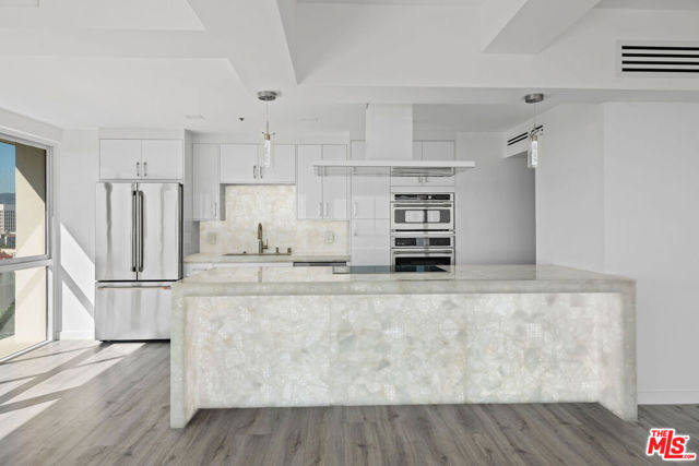 Luxury living on the Wilshire Corridor in this fully remodeled 2+2.5 condo. Welcome to your elevated urban retreat in one of Los Angeles most coveted neighborhoods. This amazing gem features 2 split spacious bedrooms plus 2.5 baths, and has been transformed with the finest finishes and materials available. Every surface, every fixtures, every details has been thoughtfully selected- from designer lighting and flooring to custom cabinetry, Cristallo Quartzite countertop, and high-end appliances. The living and dining rooms frame an unobstructed panoramic city view, perfect for entertaining and enjoying tranquil evenings in. Bathrooms feel like private spas, ultra modern in design, with the best materials and fixtures and every turn. Located on the distinguished Wilshire Corridor. You'll enjoy unparalleled access to fine dining, cultural venues and convenient transit options. The building offers a refined lifestyle. Don't miss this rare opportunity to secure luxury, location and peace of mind.