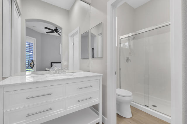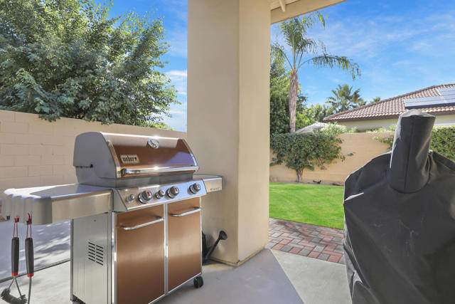 Beautiful newer home in the desirable neighborhood of Canyon Crest! Boasting upgraded three bedrooms in the main house with the fourth bedroom and bathroom in the detached casita. The gated courtyard invites you into this special home. Tastefully upgraded with extensive use of tile flooring, granite kitchen counters, upgraded stainless steel kitchen appliances, upgraded master bath, upgraded en-suite bath, dramatic front glass door, and custom window treatments. This floor-plan offers the advantage of an extra space in the garage that provides many possibilities for the new buyer... perhaps another room, extra parking and/or extra storage. The wraparound courtyard leads to a massive side yard with plenty of room for all of your outdoor activities. The covered back patio provides tons of space for the family to enjoy the cool desert evenings. Centrally located in one of the most sought after areas of Palm Desert. Schedule a showing while this one is still available!