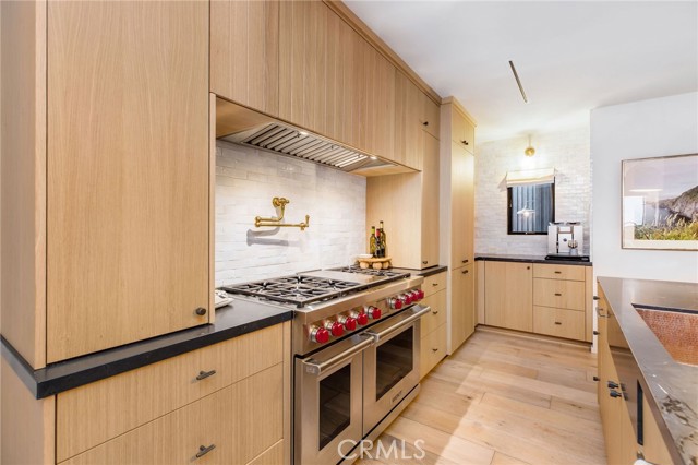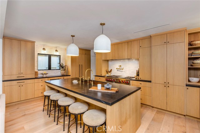 Welcome to 624 Sea Breeze Drive, a 4-bedroom, 2-bathroom, 1,633 square-foot masterpiece with a nod to the Japandi style, meticulously renovated from the ground up in 2024. The architectural essence seamlessly blends Japanese minimalism with Scandinavian warmth, offering a serene and luxurious living experience. Step inside to discover engineered white oak floors that flow throughout, complemented by antique-inspired French limestone in the entryway and bathrooms, and handcrafted Moroccan zellige tile in the kitchen and bathrooms. The home’s limewash paint and smooth plaster fireplace create a soft, organic ambiance, while premium Millboard siding, flagstone pavers, and fireplace exterior elevate the curb appeal. The heart of the home is a chef’s dream kitchen, featuring custom rift white oak cabinetry, quartzite countertops with mitered apron-front stone, and a hammered copper sink. High-end appliances include a 48” Wolf range, paneled Fisher & Paykel refrigerator/freezer, Scotsman pebble ice maker, Sub-Zero beverage fridge, Miele dishwasher, and instant-hot water faucet. Custom ceramic pendant lights and a Perrin & Rowe bridge faucet add timeless elegance. Every detail has been thoughtfully curated: custom white oak fluted interior doors, Emtek hardware, unlacquered brass Cal faucets, and Pinky’s Iron Dutch doors at the entry and garage. Handmade light fixtures from Mullan in Ireland illuminate the space with artistry. The home is equipped with all-new, state-of-the-art systems for modern living: copper/PEX water lines, a Navien tankless water system with recirculating hot water, a Flagship whole-house water filter, Milgard Tuscany series double-pane windows, and a Presidential Shake 50-year shingle roof. New HVAC, sewers, venting, and non-toxic Rockwool insulation in the living spaces ensure efficiency and comfort. All walls and ceilings feature new drywall, with every wall taken down to the studs for a flawless finish. Each bedroom boasts custom closet systems and woven wood shades, while the living room and primary suite are adorned with custom European linen drapery. The garage is a standout with insulated walls, a new door and cabinetry for ample storage, and an oversized sink and laundry area. Outside, brand-new turf and landscaping create a low-maintenance oasis, with gas and sewer hookups ready for an outdoor kitchen. This home is a rare blend of style, craftsmanship, and functionality, designed for those who appreciate the finer things in life.