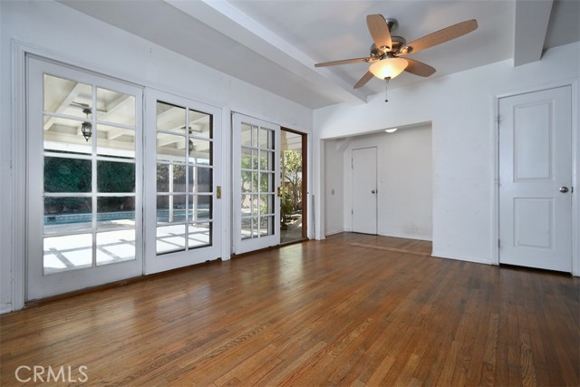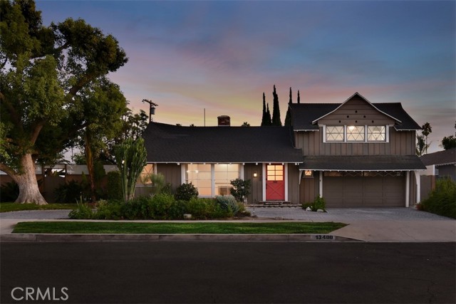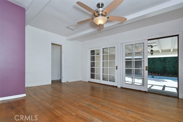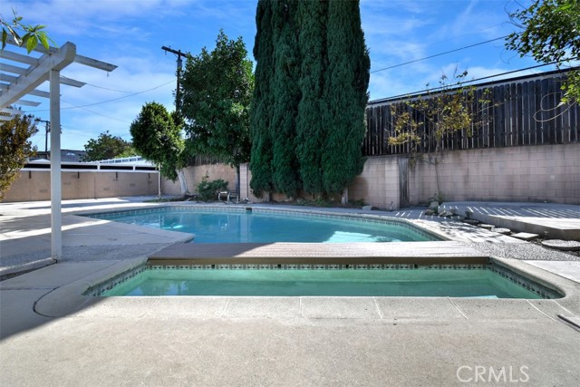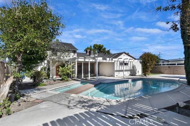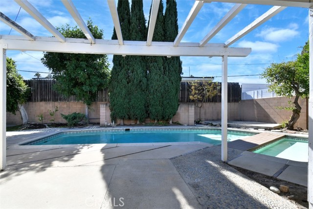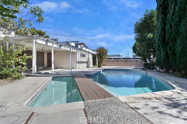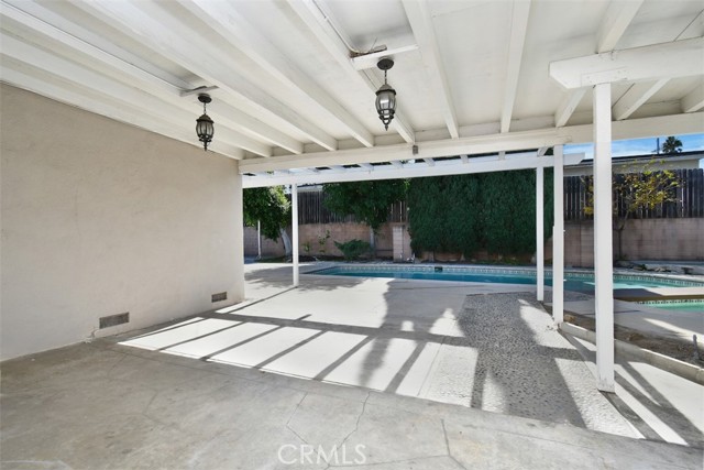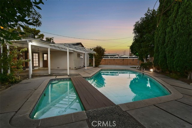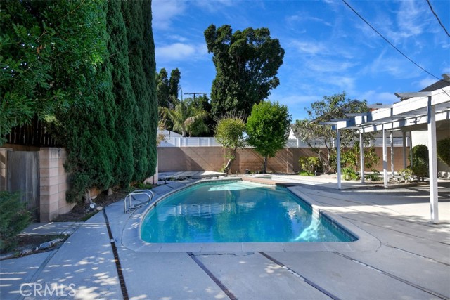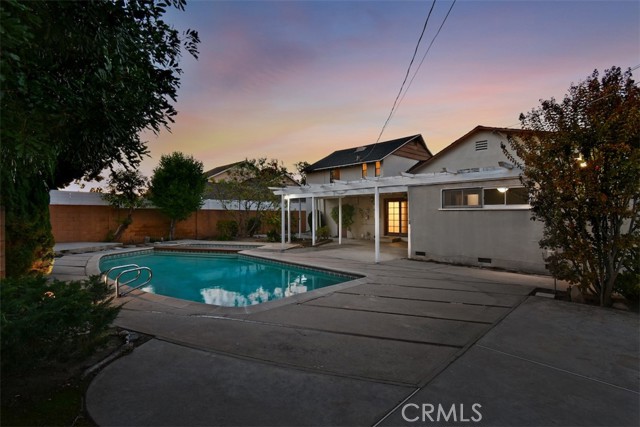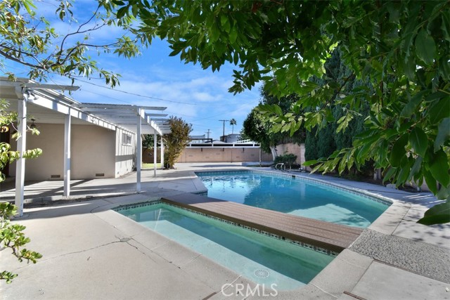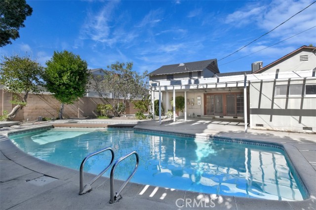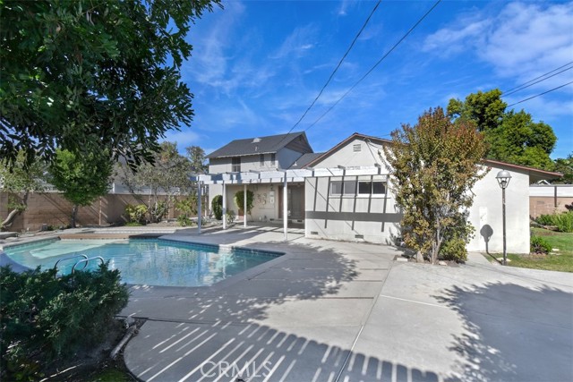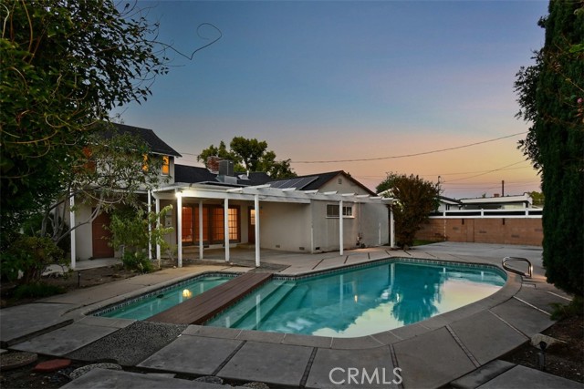 This charming 2-story home boasts 3 bedrooms and 2 bathrooms, showcasing elegant features like vaulted wood-beamed ceilings, hardwood floors, and a welcoming fireplace. The main floor includes a generous living room, a separate family room, a kitchen with a pantry and access to a deck, a half bath, and a private primary suite. Upstairs, you’ll find two more bedrooms along with a full bathroom. Set on a spacious lot of over 9,000 square feet, the property offers a refreshing pool with a covered patio, a grassy area for play, and established fruit trees, perfect for outdoor relaxation. Notable extras include solar panels that are fully paid off and a 2-car garage with laundry facilities.Situated in a tranquil neighborhood, this home is close to dining, shopping, parks, and major freeways, presenting an opportunity for personalization and endless potential.