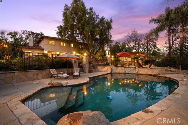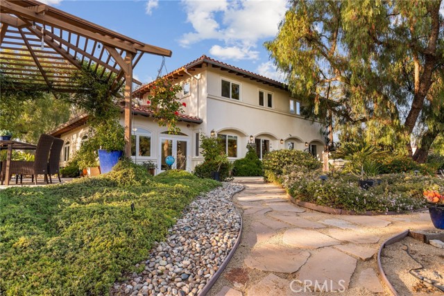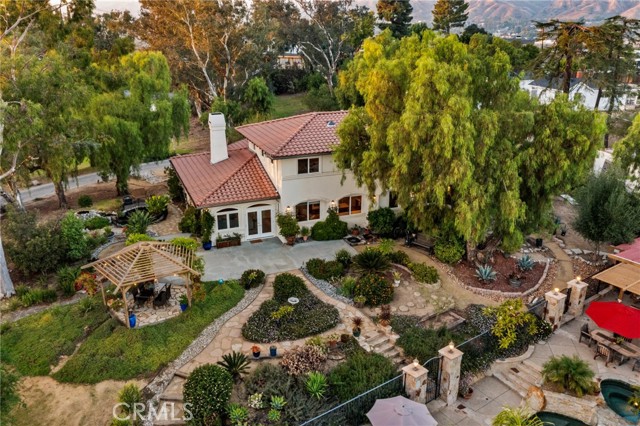 Tucked away in the peaceful community of Shadow Hills, this stunning Spanish-inspired estate offers the perfect balance of serenity, sophistication, and space. Resting on approximately 1.64 acres, the residence captures sweeping mountain vistas and a relaxed resort atmosphere. This four-bedroom, three-and-a-half-bath home was thoughtfully designed for versatility and comfort, featuring two separate primary suites, a private office, and open living areas that easily adapt to your lifestyle. Rich wood and tile floors flow through the main living spaces, complemented by soft carpeting in the den and upstairs bedrooms for an added touch of warmth. The gourmet kitchen is both stylish and functional, complete with a generous walk-in pantry, temperature-controlled wine refrigerator, KitchenAid appliances, and a brand-new dishwasher. A butler’s pantry connects seamlessly to the formal dining room, creating a natural flow for effortless entertaining. The inviting den centers around a dual-sided gas and wood-burning fireplace, ideal for cozy gatherings. The main-level primary suite provides a tranquil escape with a spacious walk-in closet and spa-inspired bath featuring a soaking tub and separate shower. Expansive windows fill the home with natural light and frame stunning views of the surrounding hillsides and lush gardens. Outdoors, enjoy your own private retreat with a saltwater pool and spa, a built-in BBQ, and multiple lounge areas—perfect for dining al fresco or relaxing beneath the stars. The grounds are fully gated for privacy and include an oversized three-car garage, ample RV parking, copper plumbing, and central air and heat. For those seeking additional opportunity, the property includes City-approved plans for a separate half-acre lot with a proposed 4,000 sq. ft. residence—an exceptional chance to expand or develop further. Ideally located near Village Christian School (Blue Ribbon), Sunland Elementary Magnet, and a nearby Armenian private school, this estate combines luxury, functionality, and investment potential in one extraordinary package. Discover the timeless beauty and quiet elegance of 10345 McBroom St—a rare Shadow Hills retreat where privacy meets sophistication.