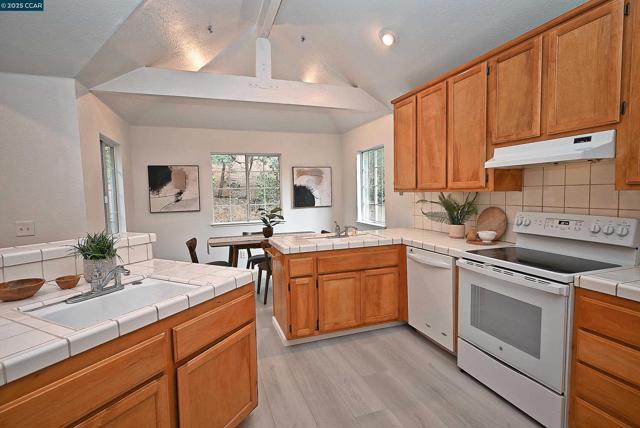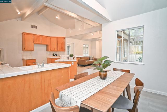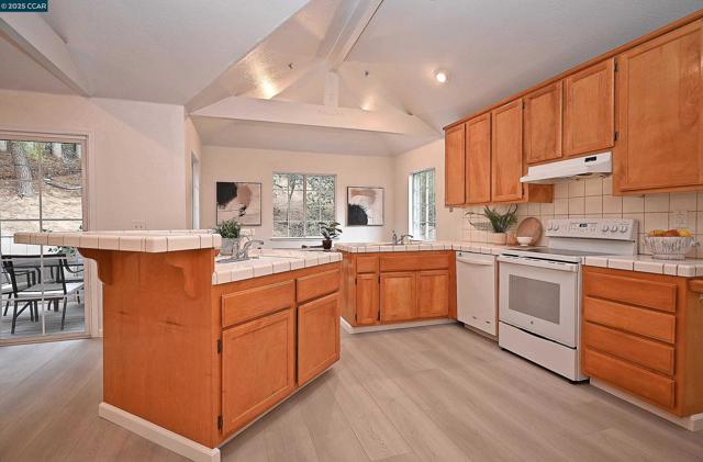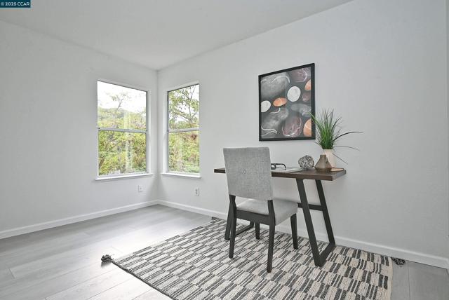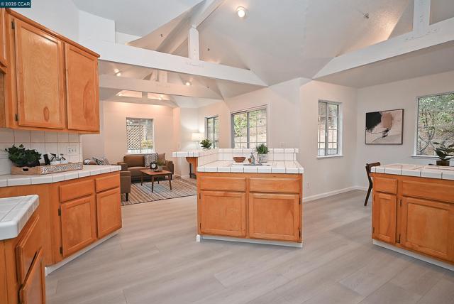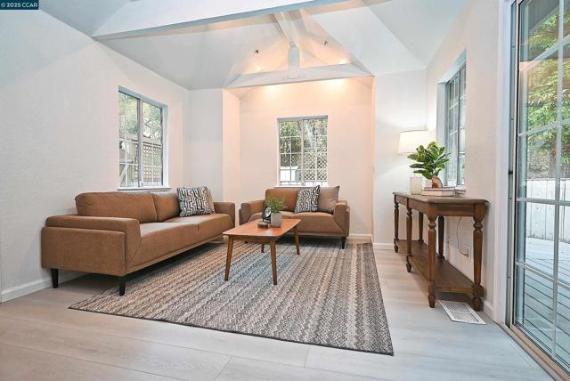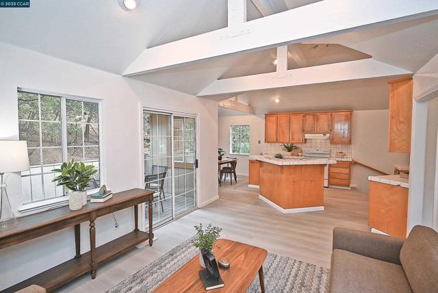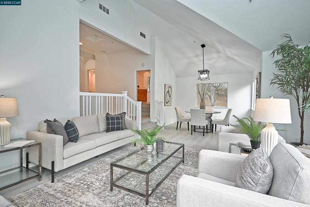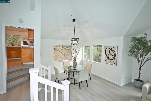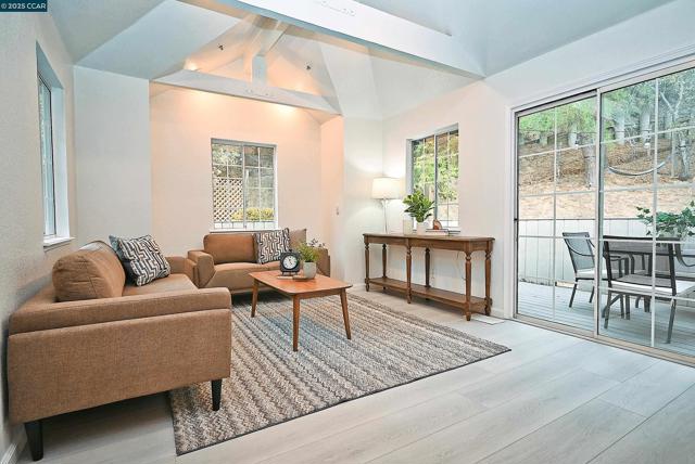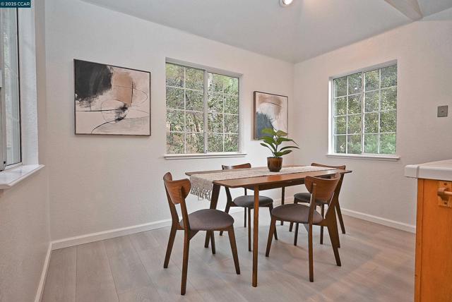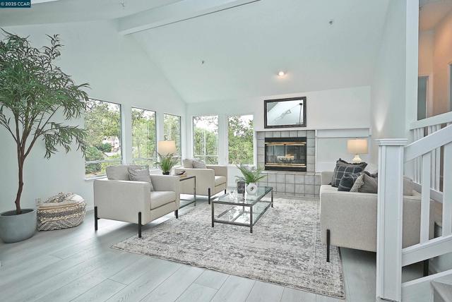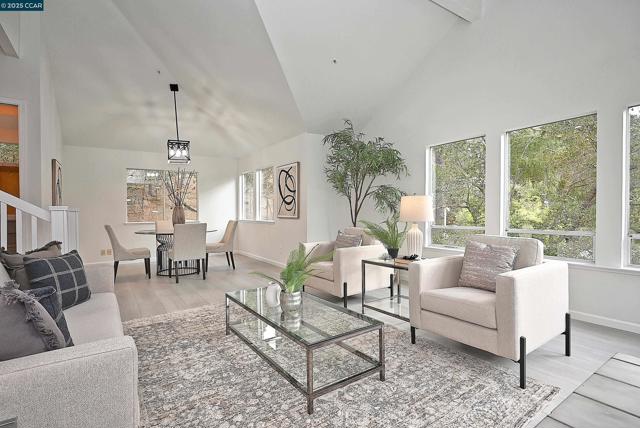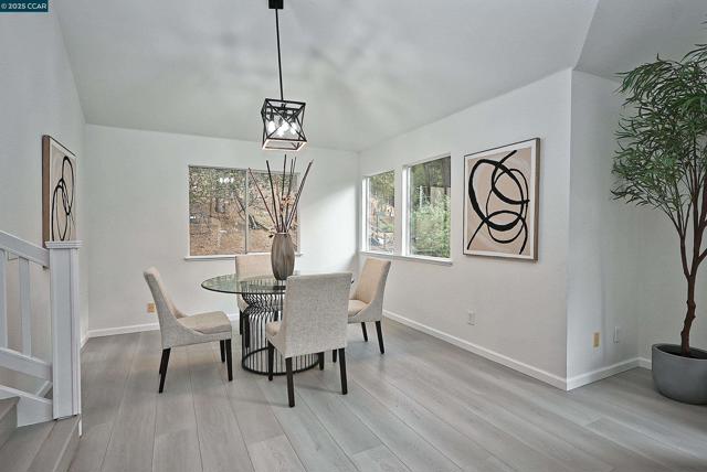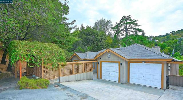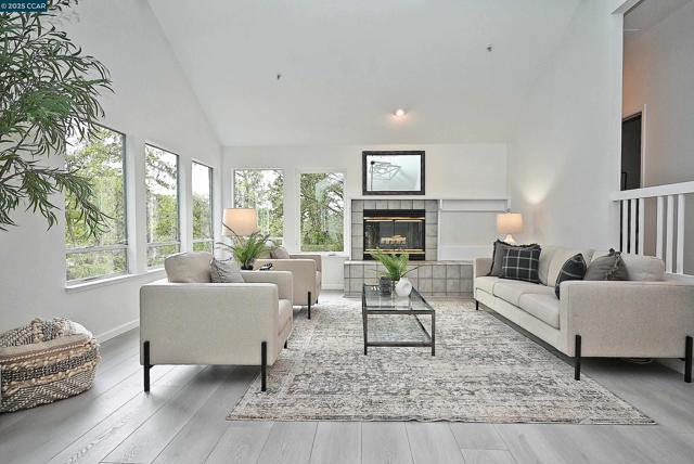 Nestled in the Martinez hills just above the downtown area is this 4 BR 3.5 BA home with over 2300 square feet of living space. Secluded and private .43 acre lot with endless possibilities. Huge kitchen/family room combination features island, high ceilings, recessed lighting and dining nook. Living room and dining area also have high ceilings, a fireplace and lots of windows making the space so light and bright. Primary suite has a fireplace, beautiful view of the hills from the windows, walk-in closet and bathroom with dual sinks. The entire interior was just painted and new flooring installed throughout the home. Two car attached garage, laundry room, central heat and air conditioning. Just minutes to the shops, restaurants, and live music venues in downtown Martinez!