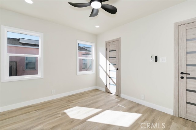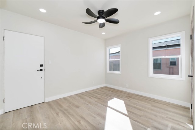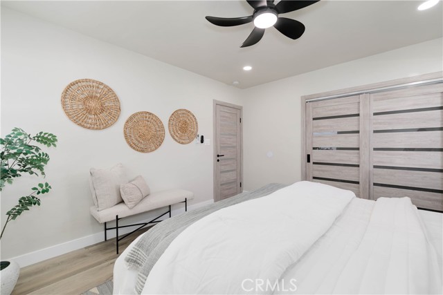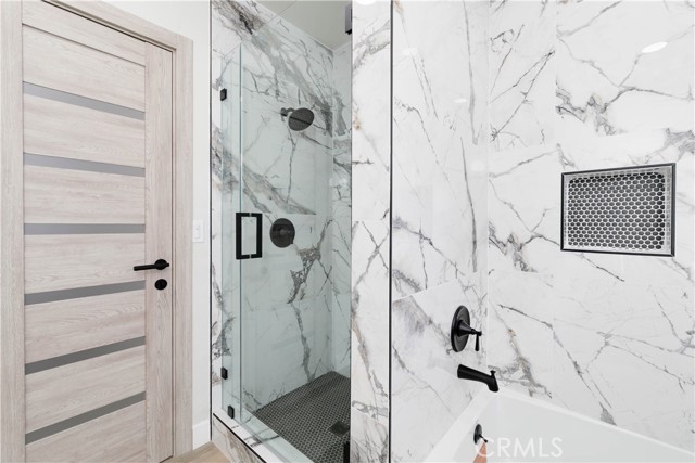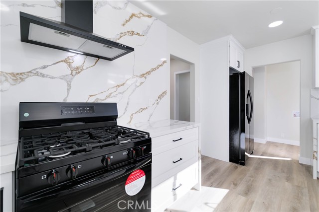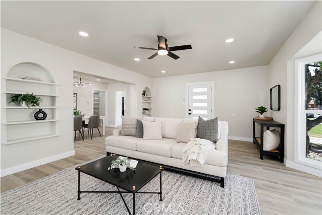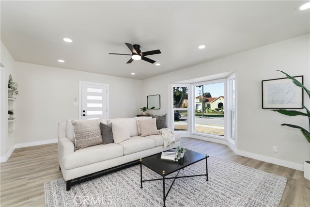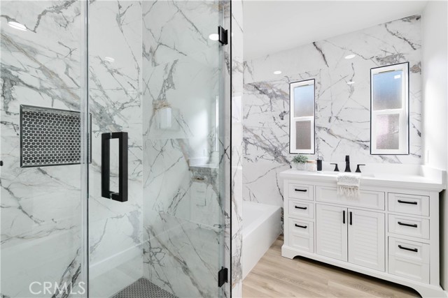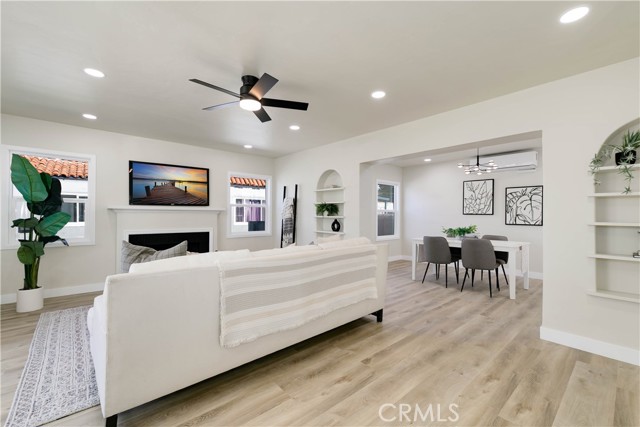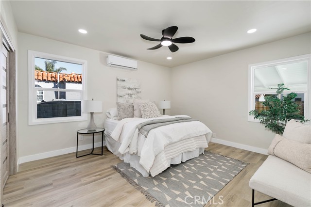 Enjoy modern living at its finest in this completely renovated turnkey home. Flooded with natural light, the open-concept layout highlights all-new dual-pane windows, designer lighting, and waterproof luxury vinyl plank flooring throughout. The spacious living room features a beautifully refinished brick fireplace, sleek ceiling fan, and oversized windows that fill the space with warmth and style. The brand-new kitchen is a showstopper with shaker cabinetry, marble-veined quartz counters, a matching full-height backsplash, matte black hardware, and a deep farmhouse-style sink. The bathroom feels like a boutique spa retreat with striking marble-look tile, a glass-enclosed shower, a soaking tub, and a modern vanity with matte black fixtures. The bedroom offers a serene escape with soft natural tones and a ductless mini-split system for year-round comfort. Major upgrades include a new electrical panel, new plumbing, and a new roof, providing peace of mind for years to come. Outside, the home’s Spanish-style exterior with a red-tile roof and drought-tolerant landscaping blends timeless charm with modern ease. Every inch has been thoughtfully designed for comfort, efficiency, and style. It's truly a move-in-ready gem.
