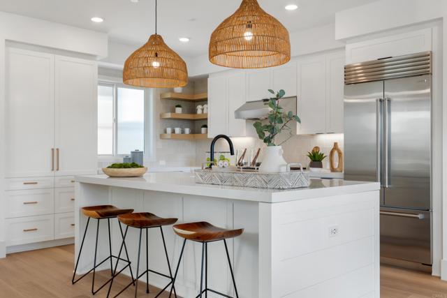 NEW construction, 2 blocks to Tamarack Beach! Experience coastal luxury at The Currents—a brand-new enclave of nine modern townhomes just steps from Carlsbad’s sunlit Tamarack Beach. Nestled on Chinquapin Avenue, this exclusive community seamlessly blends contemporary design with timeless seaside charm. 312 Chinquapin is move-in ready offering a lock and go lifestyle with 4 bedrooms, 3.5 baths, and 2,265 sq. ft. of thoughtfully crafted living space. Designed for effortless indoor-outdoor living, the home features a private fenced yard, two breezy decks, and an open-concept layout that invites natural light throughout. High-end finishes define the interiors: a chef’s kitchen with Wolf and SubZero appliances, quartz countertops, and an oversized island; stylish LVP flooring; designer-selected tile, lighting, and hardware; plus Delta and Kohler plumbing fixtures. The great room extends seamlessly to a deck via stacking Western doors, while the primary suite offers a spa-like bath, expansive walk-in closet, and private deck retreat. Additional highlights include a first-floor guest suite, third-floor laundry, abundant storage, and an attached two-car garage. Smart, sustainable features—owned solar and integrated home technology—enhance convenience and efficiency. Outdoors, the fenced yard is complete with a paver patio. Ideally situated two blocks from Tamarack Beach, steps from the Agua Hedionda Lagoon, and within walking distance to downtown Carlsbad Village, The Currents offers an unparalleled lifestyle. From morning runs along the coastline to sunset strolls through the Village, this is more than a home—it’s your gateway to coastal adventure and laid-back luxury living. Photos and video tour are of the model home, interior finishes and floor plan are the same.