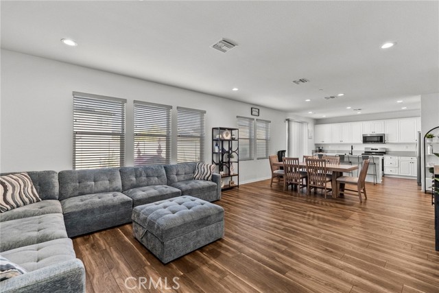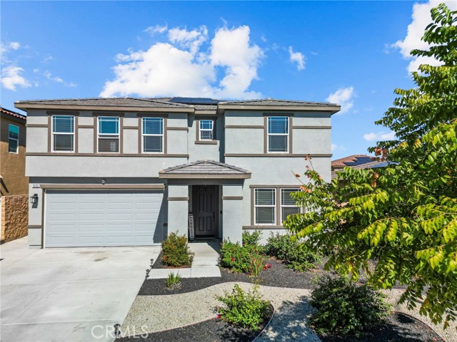 PRICED TO SELL Nestled in a serene cul-de-sac, this stunning 2023-built home offers the perfect blend of luxury and comfort. Boasting 5 spacious bedrooms and 3 full baths within its expansive 2,541 sq ft, this residence is designed for modern living. The heart of the home is the chef's kitchen, complete with elegant quartz countertops and ample space for culinary creations. A convenient downstairs bedroom with a full bath offers flexibility for guests or multi-generational living. Upstairs, a versatile loft provides additional living space, perfect for a home office or entertainment area. Enjoy energy savings with paid solar panels, while relishing the low-maintenance front and backyard, ideal for busy lifestyles. Located in a desirable school district, this home is also just moments away from shopping, offering both convenience and tranquility. With a lower tax rate and no HOA fees, this property presents an exceptional opportunity to own a dream home in a prime location. Don't miss your chance to experience the epitome of Southern California living! 3D Tour along with floor plan is available under 360 tab
