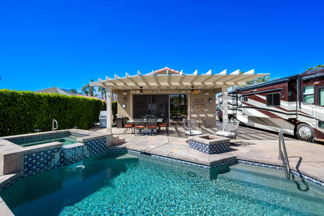 Luxury RV Resort. Very nice eastern backyard Desert Shores Motorcoach Resort property!Casita + Pool & Spa Property with double patio spaces.Garage/Great Room-Kitchen/ Retreat with Bathroom.Common area includes clubhouse, pool, spa, fitness, tennis, pickleball.