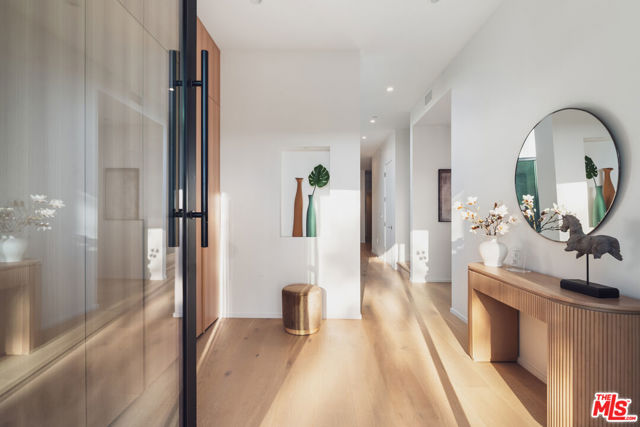 Located in the heart of Culver City on a quiet, tree-lined street, this organic modern architectural compound is newly built and ready for the most discerning buyer. Spanning 4 bedrooms and 4.5 bathrooms across approximately 3,600 square feet of living space, this home is a true turnkey residence. Upon entry, a welcoming foyer opens to a spacious living room filled with natural light and large glass sliding doors that extend the living space to a quiet, hedged side yard. A central courtyard gracefully separates the living room from the kitchen and dining area, while also serving as an ideal setting for indoor-outdoor entertaining. Sliding glass doors from both sides of the courtyard connect each living space seamlessly. The kitchen and dining areas are open-concept, offering additional space for casual seating and relaxing. The kitchen features a large waterfall quartz island, stainless steel Thermador appliances, floor-to-ceiling custom cabinetry, cabinet-paneled refrigerator and freezer, countertop seating, and direct access to the yard. A powder room is conveniently located on the main level, perfect for guests. This floor also includes a guest bedroom with an ensuite full bathroom. Upstairs are three bedrooms, three bathrooms, and a laundry room, along with access to a rooftop deck through the main hallway. The primary suite is a true retreat, sun-filled, serene, and surrounded by treetop views. The primary bathroom spares no expense, showcasing a dual floating vanity, a freestanding soaking tub, and an oversized frameless glass shower. A large walk-in closet with custom built-ins and LED lighting completes the suite. Two additional bedrooms, each with their own ensuite bathrooms, are finished with the same high-end materials found throughout the home including Toto toilets. The private, secure backyard is framed by hedges and features pavers for alfresco dining and the large flat grassy area is perfect for various outdoor activities. 4160 Keystone Avenue is ideally located just minutes from Carlson School and downtown Culver City's shops, restaurants, and boutiques, as well as major entertainment hubs including Fox Entertainment and Sony Pictures. Don't miss the opportunity to live in this well-designed architectural gem in one of Culver City's most coveted pockets.