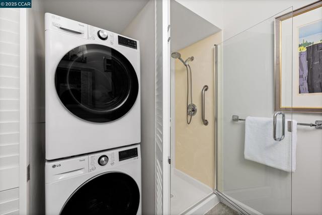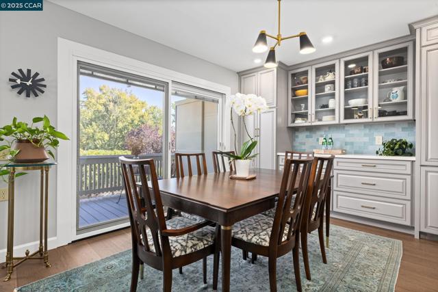 Located in Rossmoor, Walnut Creek’s premier 55+ community, this beautifully renovated Sonoma model blends modern sophistication with serene, park-like surroundings. The open layout features smooth ceilings, hardwood floors, and abundant natural light through triple pane Pella windows and sliders that open to a balcony with peaceful views. The fully remodeled kitchen showcases all wood KraftMaid cabinetry, quartz countertops, a large island with bar seating, Brizo faucet, water filtration system, and premium appliances including a Bosch induction range, Fisher & Paykel two drawer dishwasher, and built in Thermador refrigerator. A custom buffet and Thomas O’Brien lighting enhance the dining area’s style. Both bedrooms include custom closet systems, and the updated bath features quartz countertops, modern cabinetry, and designer fixtures. Additional highlights include an LG washer and dryer, mirrored entry doors, and convenient carport parking. Residents enjoy a vibrant 55+ lifestyle with resort-style amenities including clubhouses, pools, fitness centers, walking trails, social events, and optional golf memberships, plus gated security and community transportation.
