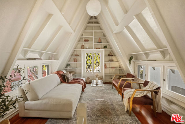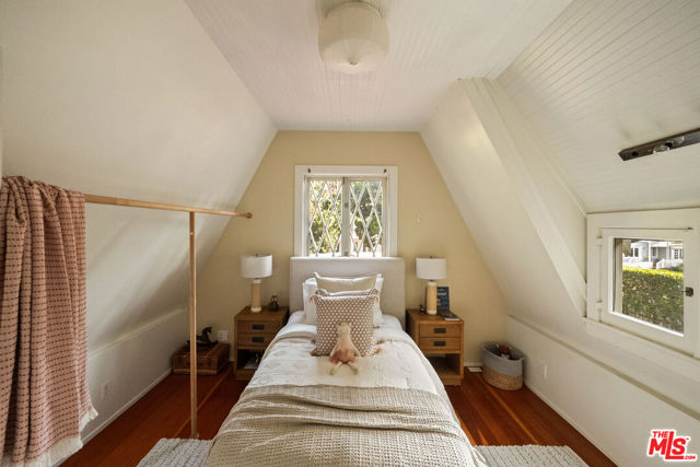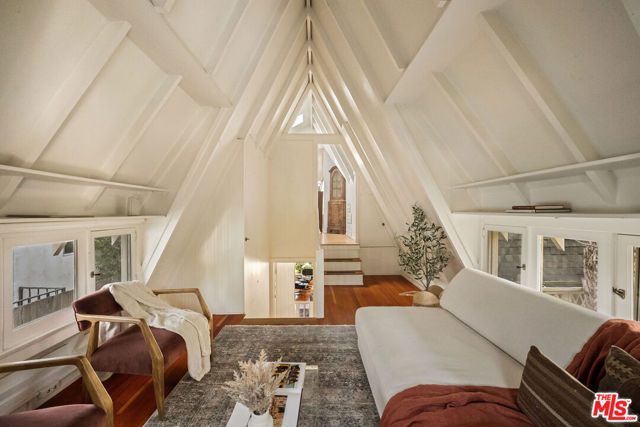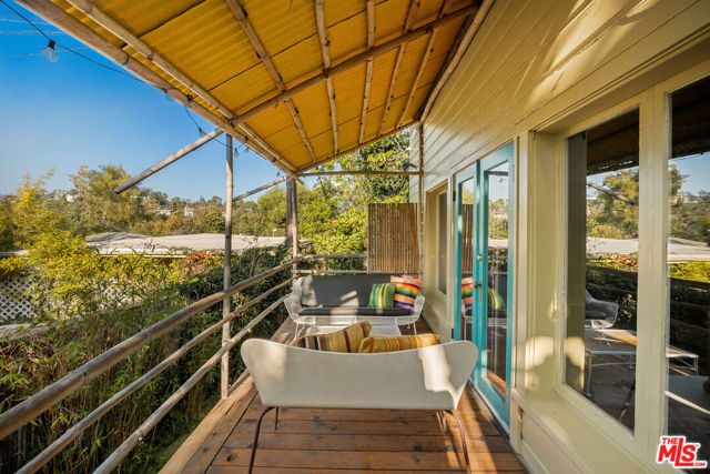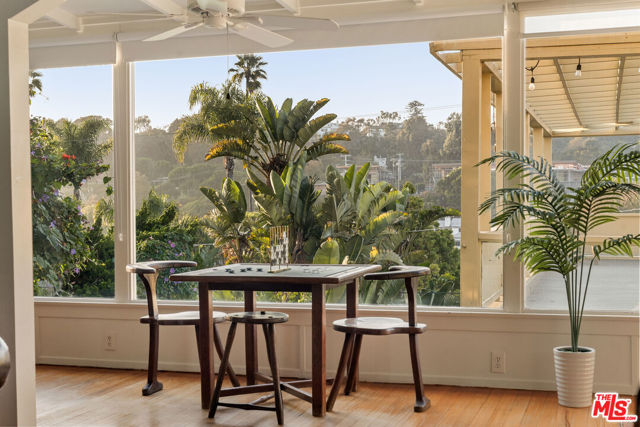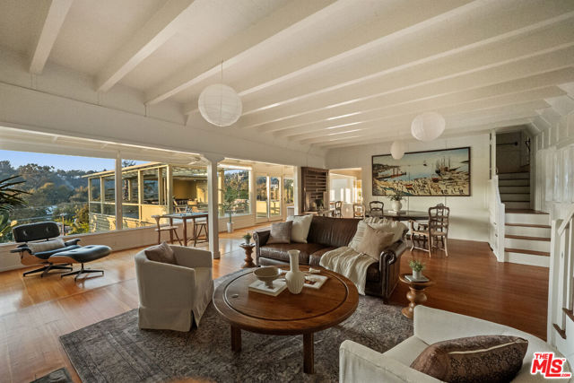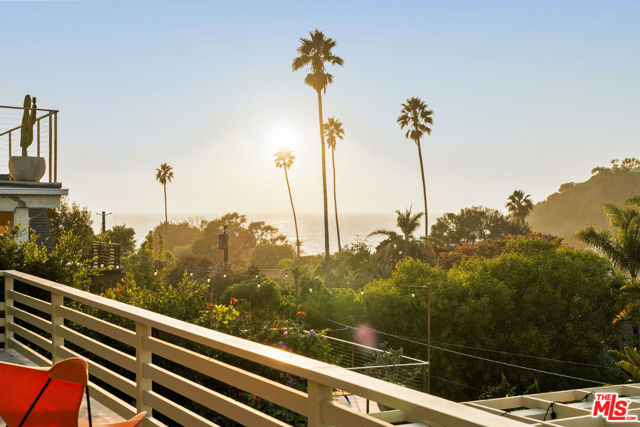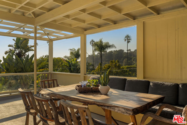 Nestled in the highly sought after Santa Monica Canyon, 237 Mabery Road offers the rare combination of privacy, vintage charm, and stunning ocean views - all just moments from the beach. This storybook cottage features two separate structures: the main residence and a bonus structure that can serve as a guest house, private office, or provide income potential! The main home welcomes you with a wall of windows across the living and dining areas, framing lush canyon views and filling the interior with natural light. Wood-beamed ceilings, a stone fireplace, and a spacious sundeck blend classic 1930s craftsmanship with effortless indoor outdoor living. Upstairs, the primary suite enjoys panoramic views of the ocean and canyon, a private balcony, and adjacent flex space perfect for a den, office, or reading nook. Two additional bedrooms with vaulted ceilings and diamond lattice windows complete the upper level, exuding warmth and architectural character throughout. The main level also includes a bedroom and full bathroom, ideal for guests or easy single level living. The second structure offers a bright one bedroom guest home with floor to ceiling windows that capture serene canyon views. Below, a separate studio with private patio provides additional space for guests, work, or wellness. This home offers the ultimate coastal lifestyle, located on one of the Canyon's most desirable streets and within walking distance to the award-winning Canyon Elementary School and some of the neighborhoods best restaurants including Giorgio Baldi, The Golden Bull, and Caffe Delfini.