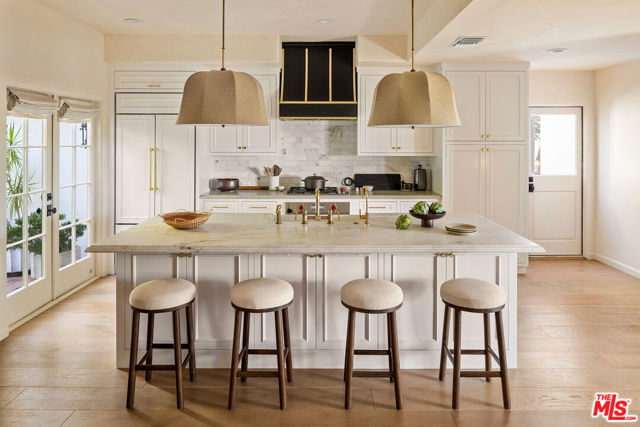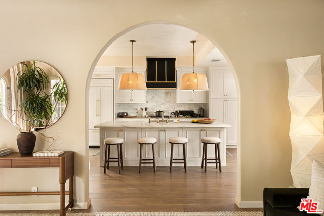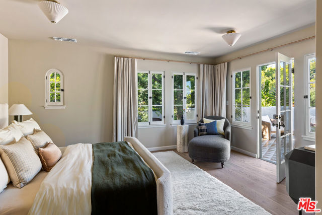 Elegant design, luxurious finishes, and sweeping views define this 1926 Spanish Colonial in one of Los Feliz's most sought-after enclaves. The home has been meticulously designed, and all systems have been upgraded over the past two years. Upon entering, you are greeted by a living room that exudes warmth and grandeur with arched windows, coved ceilings, Italian Murano sconces, and a classic fireplace. A chef's kitchen with Wolf appliances, stone counters, and Waterworks fixtures flows into a window-lined dining room overlooking the backyard and skyline. With five bedrooms and four bathrooms, the home offers abundant space and flexibility. Each upstairs suite includes an en suite bath and opens to private sunlit decks with Zia marble tile and views of the Griffith Observatory and surrounding hills. The lower level offers a screening room, den, two guest suites and a cedar sauna. The extraordinary outdoor living spaces were crafted by AD100 landscape designers Terremoto, featuring native plantings, gardens, fruit trees, redwood decking, cedar jacuzzi, and custom fencing. Located just moments from local favorites on Vermont and Hillhurst and steps from the scenic trails of Griffith Park. This timeless turnkey Los Feliz home is a rare blend of architectural heritage and modern luxury.