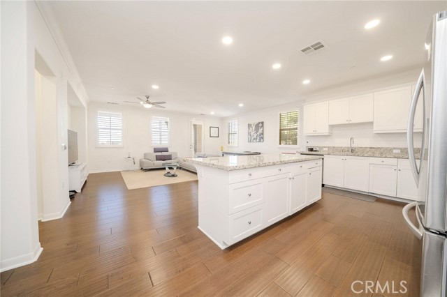 Gorgeous! Welcome to this beautiful 3378 Merida Lane, Built in 2016 recently refreshed with new paint, this turn-key residence features a beautiful open floor plan with 2 bedrooms, 2 baths. Spacious living room with plantation shutters throughout, recessed lighting, and luxury hardwood flooring in living room. The kitchen is open to the dining area, features contemporary white cabinets with granite countertops stainless steel appliances, and island seating. Primary suite has walk-in closet with dual sinks. The laundry unit is thoughtfully located inside, and there is a convenient two-car garage. This home is close to shopping centers, trails, parks, golf courses, and freeways. Much more! A must-see!
