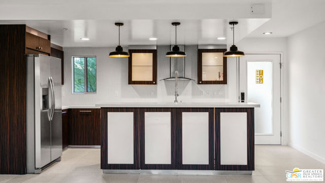 Welcome to Querencia Palms - where home is more than a place, it's a feeling. This fully renovated 2-bedroom, 2-bath condo is part of a newly released conversion, now available for the first time! Offering coveted Fee Simple ownership (not leased land), the home features terrazzo-inspired tile, sleek new carpet, and vibrant mid-century modern finishes with the buyer's choice of custom wallpaper accents in the living room. The chef's kitchen comes equipped with stainless steel appliances, while modern conveniences include keyless smart lock entry with fingerprint access and in-unit laundry. Enjoy two private patios - one overlooking the courtyard, the other opening onto your own section of the tranquil koi pond with flowing water features. One of only two homes of its kind, this unit provides direct backyard access from every room, plus your own private waterfall, filling the air with the serene sound of running water. Community amenities include a beach-entry pool and spa, outdoor BBQ and event space, three fire pits, a dog wash station and pet area, and gated access with covered parking. Perfectly located in South Palm Springs - just steps from downtown, the CV Link, hiking trails, and dining. Querencia Palms offers a rare blend of style, comfort, and convenience, wrapped in a true sense of community. A desert retreat designed for personality, charm, and well-being.