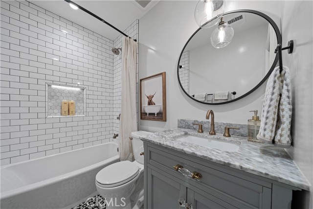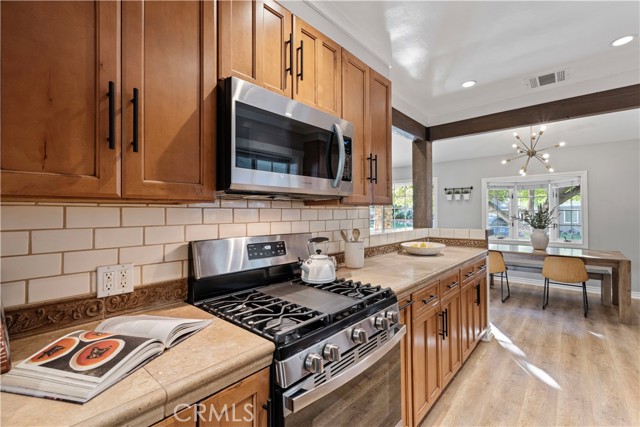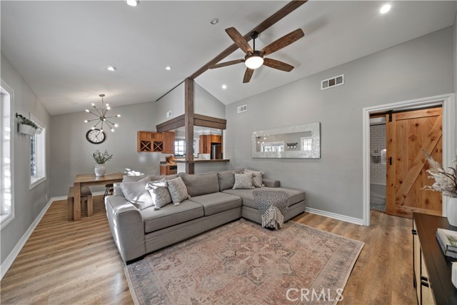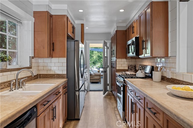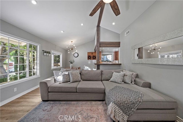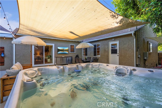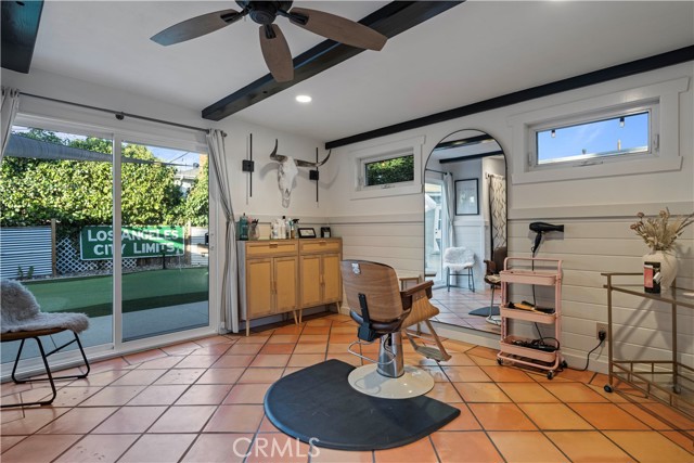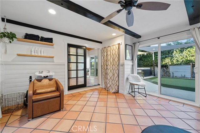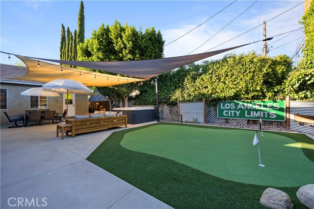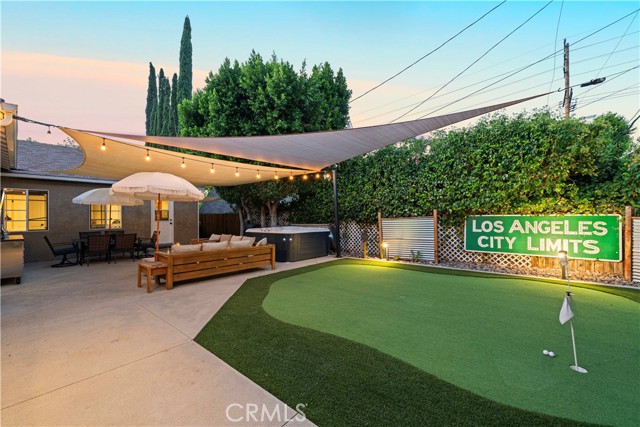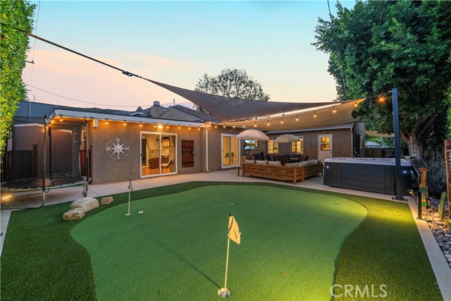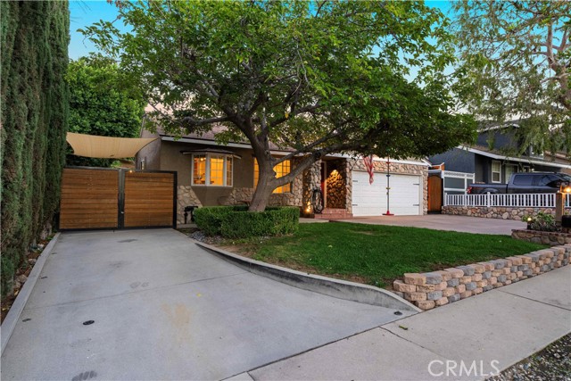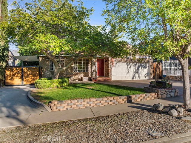 Welcome to 10250 Quill Avenue, a warm and inviting home set on a quiet, neighborly cul-de-sac. The street is wide, well kept, and lined with sidewalks on both sides, adding to the open, welcoming feel of the neighborhood. The curb appeal draws you in right away, with stone and wood accents, a charming front porch area, and a mature tree that shades the front yard and adds privacy. There is additional parking with two concrete driveways and extra space along the side of the home as well as a RV dump station. The moment you step inside, you’re greeted by the charm of wood beams and vaulted ceilings that bring richness and warmth to the open living space. The living room flows naturally into the dining area and kitchen, creating an easy layout that feels both functional and welcoming. Recessed lighting throughout the home adds a soft, modern touch and enhances the inviting atmosphere. A central hallway leads to three bedrooms, two updated bathrooms, and direct access to the finished garage. The primary suite is what makes this home stand out. A spacious retreat with vaulted wood ceilings, Saltillo tile floors, and a stone fireplace that fills the room with warmth and character. A bonus room off the primary, currently used as a hair salon, offers flexibility for a home office, studio, or creative space. The private bathroom offers a walk-in shower, dual vanity, and wood accents for a warm, modern touch. The suite provides direct access to the backyard, along with a separate door to a private patio tucked behind the home, perfect for quiet mornings or evening unwinding. Designed for relaxation and fun, the backyard includes lush landscaping, a built-in fire pit, a large putting green, a spa, and landscape lighting that creates an inviting ambiance. Bistro lights add a soft glow across the patio, setting the perfect mood for entertaining. 10250 Quill Avenue is a rare find combining charm, practicality, and a true sense of home in one of Sunland’s most peaceful, community-oriented pockets.