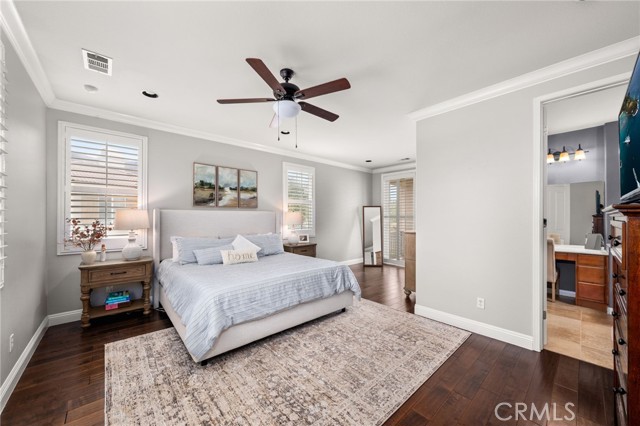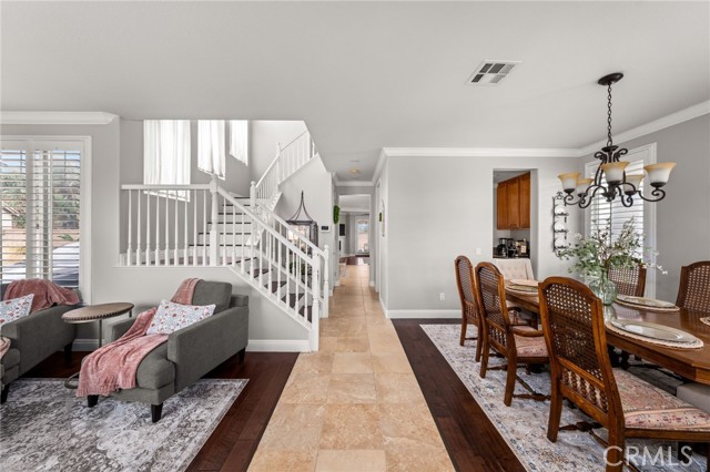 Gorgeous turn-key Rancho Cucamonga home located in the Etiwanda School District. This beautiful home is situated on a corner lot and offers 4 large bedrooms, 3 bathrooms, kitchen that opens to the family room, formal living and dining rooms, butlers pantry, a bonus loft and much more! it has wood flooring throughout, and tiled kitchen and restrooms, new interior and exterior paint, wood shutters and high ceilings. Its a must see property. Located close to schools, freeways and all amenities.