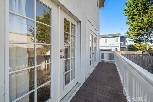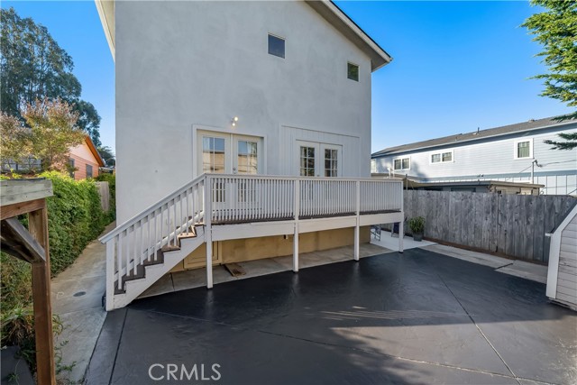 Tucked at a quiet fork in the road in desirable Morro Heights, this custom-built 2005 home combines quality craftsmanship, thoughtful design, and exceptional privacy. The elegant entry is framed by beveled-glass doors and soaring 20-foot ceilings that flood the interior with natural light and set a welcoming tone. Upstairs, an open-concept living, dining, and kitchen area features vaulted ceilings, a cozy fireplace, and sliding doors to a sunny balcony with hillside, Black Hill, and distant ocean views. The kitchen showcases natural-stone counters, warm maple cabinetry, and stainless appliances. The spacious primary suite feels like a private retreat with plantation shutters, elevated ceilings, and a serene ensuite bath wrapped in stone tile. Architectural details such as arched hallways, art niches, and custom lighting add subtle artistic flair throughout. The flexible layout is currently arranged as two self-contained living spaces. The upper level offers the main living area, primary suite, guest bath, and balcony, while the lower level features its own entrance, kitchenette, bath, and three bedrooms—one currently used as a living area. Two of the lower bedrooms open through six-foot French doors to the private backyard, blending indoor and outdoor living. A custom bookcase divider can easily be removed to restore the original four-bedroom, three-bath design—ideal for multigenerational living, guest quarters, or rental income. Outdoors, stamped-concrete patios wrap around the home for low-maintenance enjoyment, complemented by lush landscaping filled with succulents, palms, and flowering jasmine. The backyard includes a storage shed, mature greenery, and privacy fencing, creating a peaceful, easy-care retreat. A finished two-car garage and oversized stamped-concrete driveway provide abundant parking and additional space for guests or recreation. Located just minutes from downtown Morro Bay, residents can enjoy boutique shopping, local dining, the iconic Embarcadero, and easy beach access. From hiking nearby Black Hill to kayaking in the estuary, wine tasting in Edna Valley, or exploring Cayucos, Avila Beach, and Paso Robles, this home embodies the best of the Central Coast lifestyle—where natural beauty, comfort, and community meet.