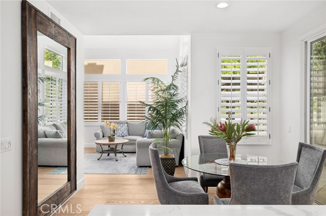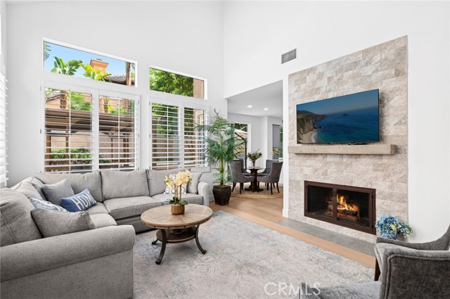 Set on a prime interior corner lot, this beautifully refinished 3-bedroom, 2.5-bath detached home blends timeless style with modern comfort in one of Newport Coast’s most sought-after gated neighborhoods. Step inside to a bright, freshly painted interior where natural light pours through walls of windows dressed in custom plantation shutters. The living room features soaring ceilings and a cozy fireplace, creating an inviting space for both relaxation and entertaining. The large private patio extends your living space outdoors. The adjacent dining area opens to a stylish kitchen, newly refreshed with refaced cabinetry, new appliances, and countertops—a perfect setting for casual meals or hosting friends. White oak floors run throughout the home, adding warmth and sophistication. Upstairs, you’ll find a generous primary suite with plantation shutters, a large walk-in closet, and a beautifully updated bath. Two additional bedrooms—each with mirrored closet doors and ample storage—share a pristine full bathroom. Residents of Sancerre enjoy resort-style amenities, including a community pool, spa, and BBQ area, with access to Newport Ridge tennis courts, scenic hiking and biking trails, and top-rated schools. Conveniently located near the beach, Fashion Island, John Wayne Airport, and world-class dining and shopping, this home offers the best of Newport Coast living.