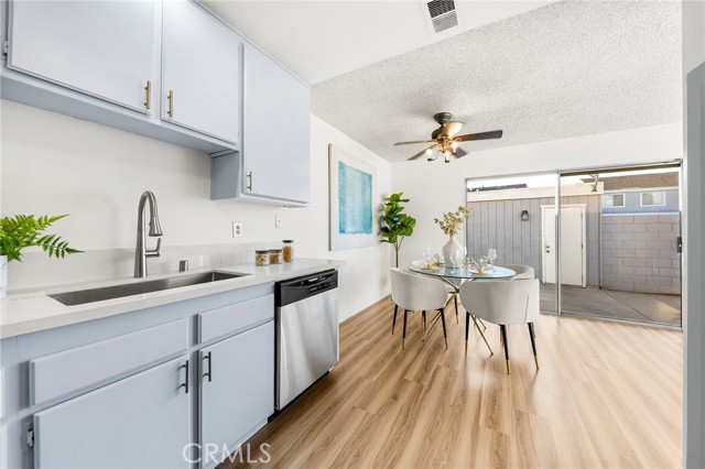 Welcome to 1044 Canyon Spring Ln, Diamond Bar — a Rarely Available Single-Level + End Unit located in one of the most desirable neighborhoods within the top-rated Diamond Bar school district (Walnut Valley Unified School District schools, rated A+ on Niche). This bright and airy one-story home features 3 bedrooms, 2 full bathrooms, and a 2-car garage — all on one level with no stairs to climb. As an end unit, the home enjoys windows on three sides, including a corner bedroom with windows on two walls, bringing in abundant natural light and refreshing cross-breezes. Morning sunlight gently fills the rooms, creating a warm and inviting atmosphere. Step outside to a lush green front lawn that enhances both Feng Shui and scenic views, offering a broad, open panorama of green. Much more to offer: Central AC, dual-pane windows, brand-new interior paint, laminate flooring in common areas and wood flooring in all 3 bedrooms, upgraded kitchen and bathrooms with quartz counter top, and brand-new modern kitchen appliances. HOA covers trash and landscaping services, pest control, repair of roof, structure, exterior, and offers community amenities such as swimming pool, playground, clubhouse, and dog waste stations. Walk just 10 minutes to Gym, Walmart, Pharmacy, 4 banks, Sycamore Canyon Park, Steep Canyon Trail. Perfectly located near parks, shops, award-winning schools, and easy FWY access, this move-in ready turnkey home combines comfort, style, and convenience — a rare find in Diamond Bar!