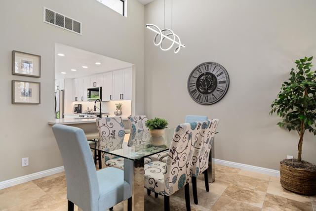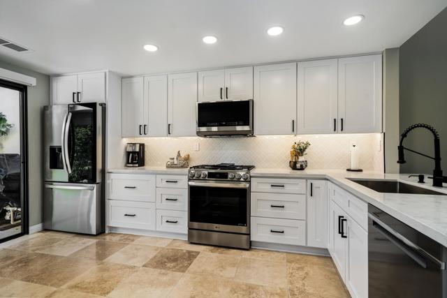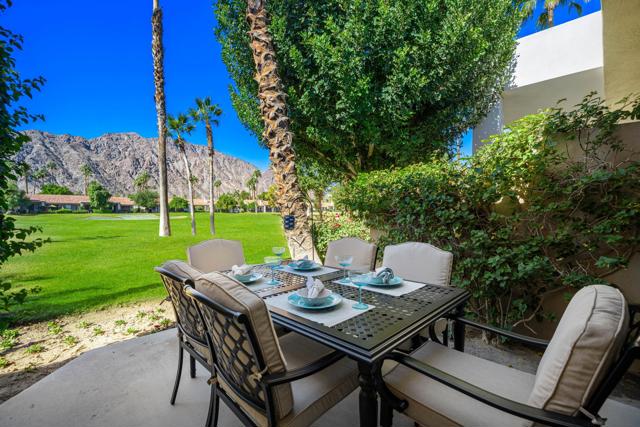 Experience modern desert living in this beautifully remodeled two-bedroom, two-bathroom west-facing fairway condo, offered furnished per inventory. Step inside to soaring high ceilings and abundant natural light enhanced by skylights and recessed lighting. The open layout showcases elegant travertine flooring throughout, creating a seamless flow between spaces. The chef's kitchen features shaker-style white cabinets, quartz countertops, and premium LG stainless steel appliances, perfect for both entertaining and everyday comfort. Each bathroom has been completely updated with tiled showers and new vanities, while new interior doors add a fresh, refined touch. Relax and take in the serene fairway views from your private patio, ideally oriented to capture the beauty of west-facing sunsets. A perfect blend of style, comfort, and location, this turnkey condo is ready to enjoy! Located within the world-renowned PGA West Golf Resort, celebrated for over three decades as the 'Western Home of Golf in America', this prestigious community offers an unparalleled desert lifestyle. Enjoy a blend of resort-style living and private club golf, complemented by an exceptional array of amenities, recreation, and natural beauty in the heart of the Greater Palm Springs area.