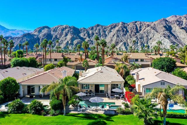 Turnkey PGA West Home located on the 2nd fairway of the prestigious Arnold Palmer Private Course at PGA West, this Spyglass floor plan offers the perfect blend of comfort, style, and resort-style living. With 3 bedrooms and 3 baths, including the casita with private entrance, this home is ideal for hosting guests or enjoying private retreats.Step inside through a beautifully landscaped courtyard to find a light-filled great room featuring high ceilings, tile flooring, crown molding, shutters, a fireplace, built-ins, and a full bar area. The open layout is perfect for everyday living or entertaining. Enjoy breathtaking golf course and mountain views from your private backyard oasis while relaxing in your pool and spa, gather around the fire pit, or cool off with the retractable awnings and misting system--an entertainer's dream! The spacious primary suite includes a large walk-in closet and ample natural light. This home is turnkey furnished and move-in ready. 2-car garage + golf cart garage included.PGA West Membership amenities include: 6 Championship Golf courses, 3 Clubhouses with restaurants, Fitness centers, tennis, pickleball, bocce, Community pools and spas, Gated security and social events. HOA covers landscaping, cable, internet, trash, and 24-hour security. Don't miss this chance to own a beautifully maintained home in one of the desert's most desirable golf communities. Schedule your private showing today!