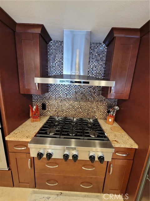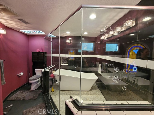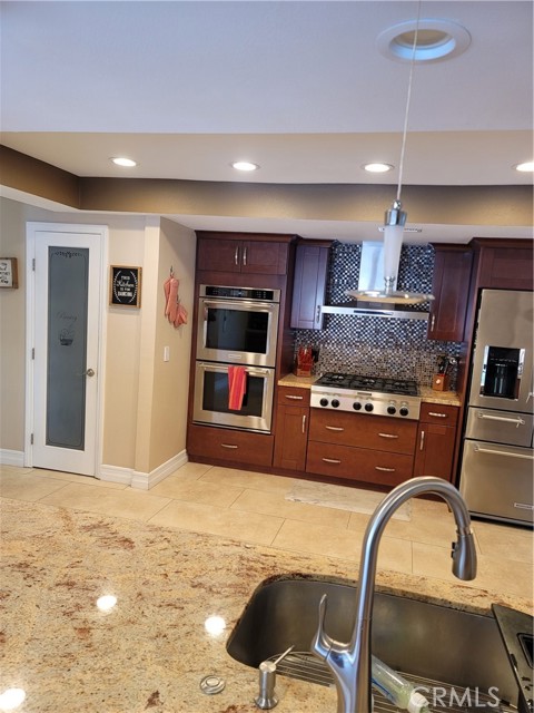 Remarkable Location! Gorgeous mini estate home with pool, plenty of upgrades, and 4 fireplaces. Large windows featuring plenty of natural light along with plenty of skylights throughout. As you walk in on the right is the sunken living room with vaulted ceilings, double sided fireplace, electric blinds, and recess lighting. Stone flooring leads you to the Chefs kitchen and it is fully stocked! Stone counter tops, built-in appliances, double oven, separate panty closet, built in island bar, and designer finishes and lighting. Separate Laundry closet. Open concept living with adjoining family room/dining area and sliding glass doors that lead you to the entertainer's backyard. There is a secondary family/Rec room with a wet bar on the first floor along with a full bathroom that has direct access to the backyard. This is great for in-laws suite, game room, home theater, etc... All bathrooms have been upgraded with designer title and finishes. All bedrooms are on the top floor. Newer laminate flooring lines the stairs and all of top floor. The primary bedroom is grand! Fireplace, skylights, vaulted ceilings, walk in closet plus additional closet, and spa like bathroom. There is a custom shower and bath enclosure featuring a soaking tub and shower area all in one. You will love the backyard! Fruit trees, heated pool and spa, seating area, and low maintenance. Fantastic curb appeal with 4 car driveway.