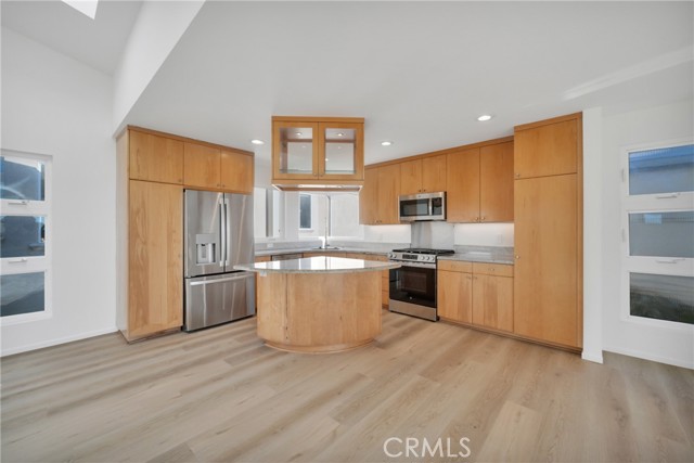Bright, Detached End-unit Townhome with Ocean-Peek and Greenbelt Views! This beautifully updated, split-level 3-bedroom, 3.5-bathroom detached townhome offers 2,300+ square feet of modern coastal living. Featuring new luxury vinyl plank flooring, fresh paint, and brand-new kitchen appliances, this home offers a refreshed and inviting atmosphere throughout! The open-concept top floor features truly exceptional natural light. The living area showcases multiple skylights and windows on all four sides of the home along with direct access to a west-facing deck exhibiting ocean-peek and greenbelt views. The top floor also features a gas fireplace, half bathroom, and a kitchen that flows seamlessly into the dining and living areas. The private rooftop deck features stunning sunset, greenbelt, and ocean views! The second floor features two bedrooms with en-suite bathrooms and walk-in closets. The huge primary suite includes two walk-in closets and a spa-style bathroom with a separate jacuzzi tub and shower along with dual vanities! The bottom floor features a third bedroom with an en-suite bathroom as well as a separate laundry room and access to the attached two-car garage with extra storage space. Last, but not least, a dumbwaiter provides access to all three levels of the home. One of only three homes in the community, this end-unit residence offers rare privacy, space, and light—all in a prime location close to the beach, shops, dining, and great schools!
